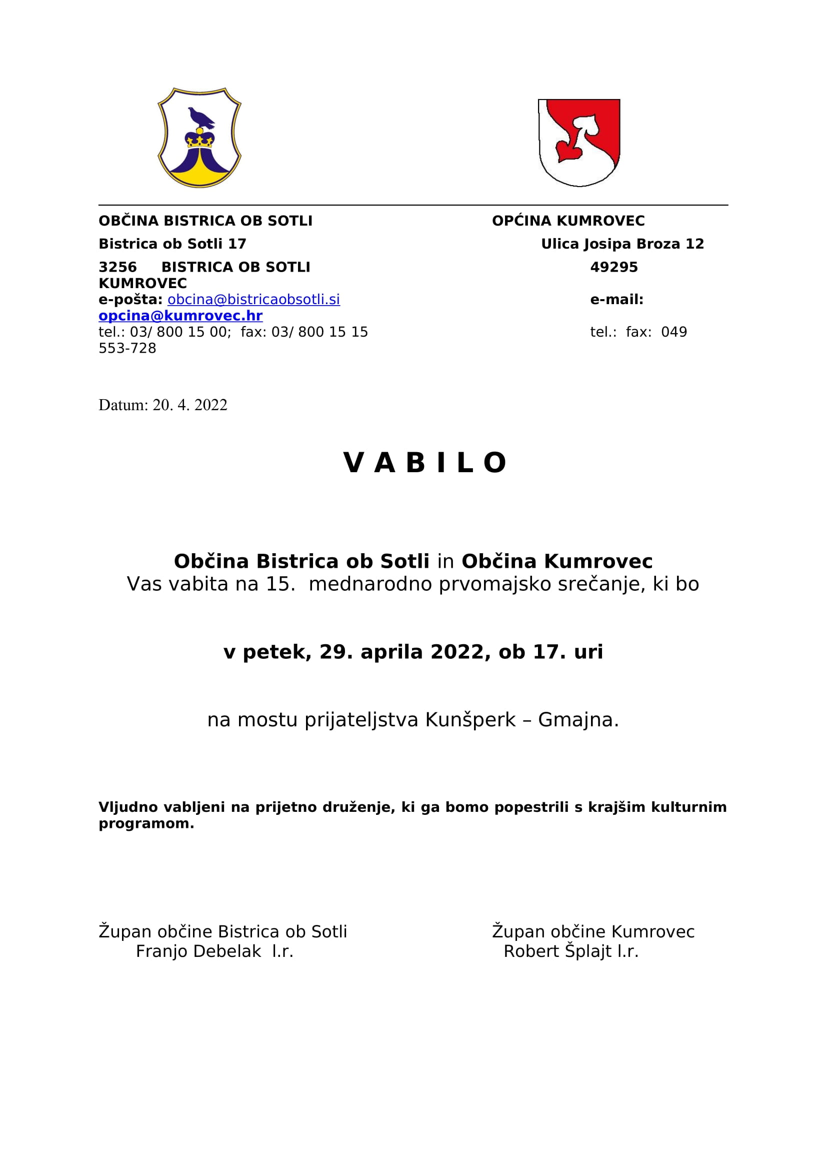 15. TRADICIONALNO SREČANJE NA MOSTU PRIJATELJSTVA V KUNŠPERKU
