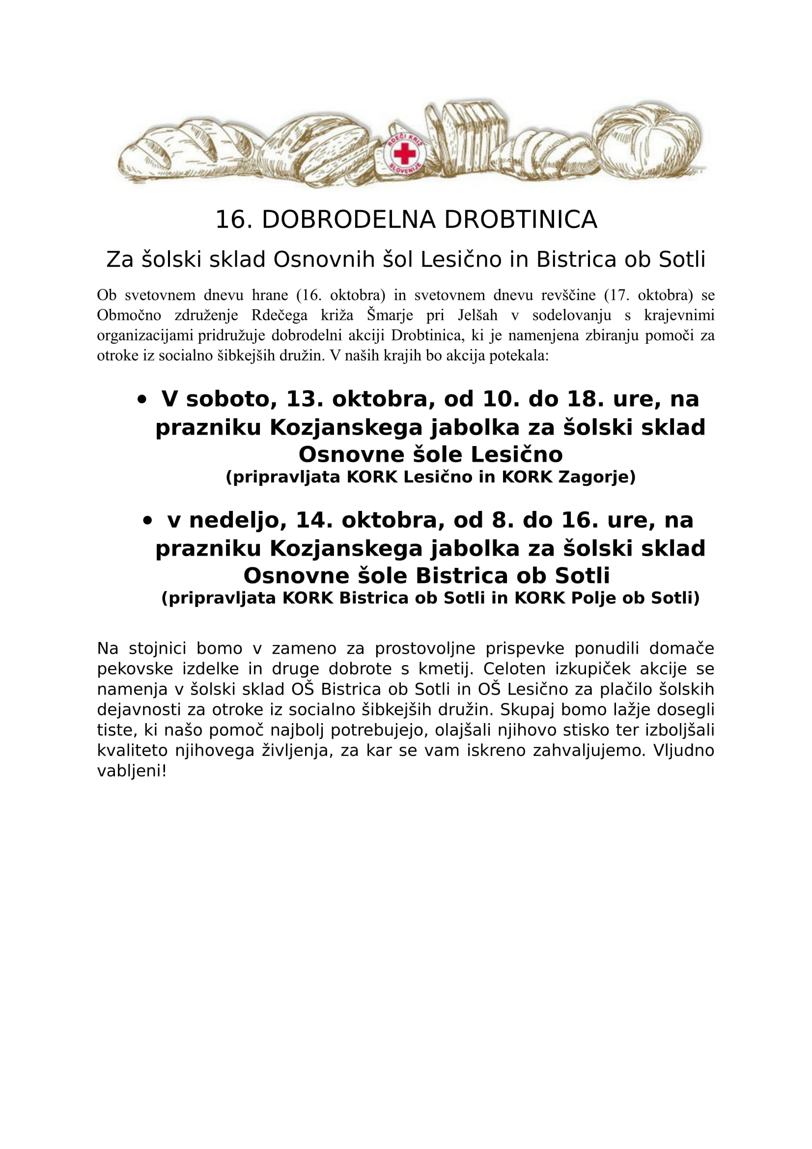 16. DOBRODELNA DROBTINICA Za šolski sklad Osnovnih šol Lesično in Bistrica ob Sotli