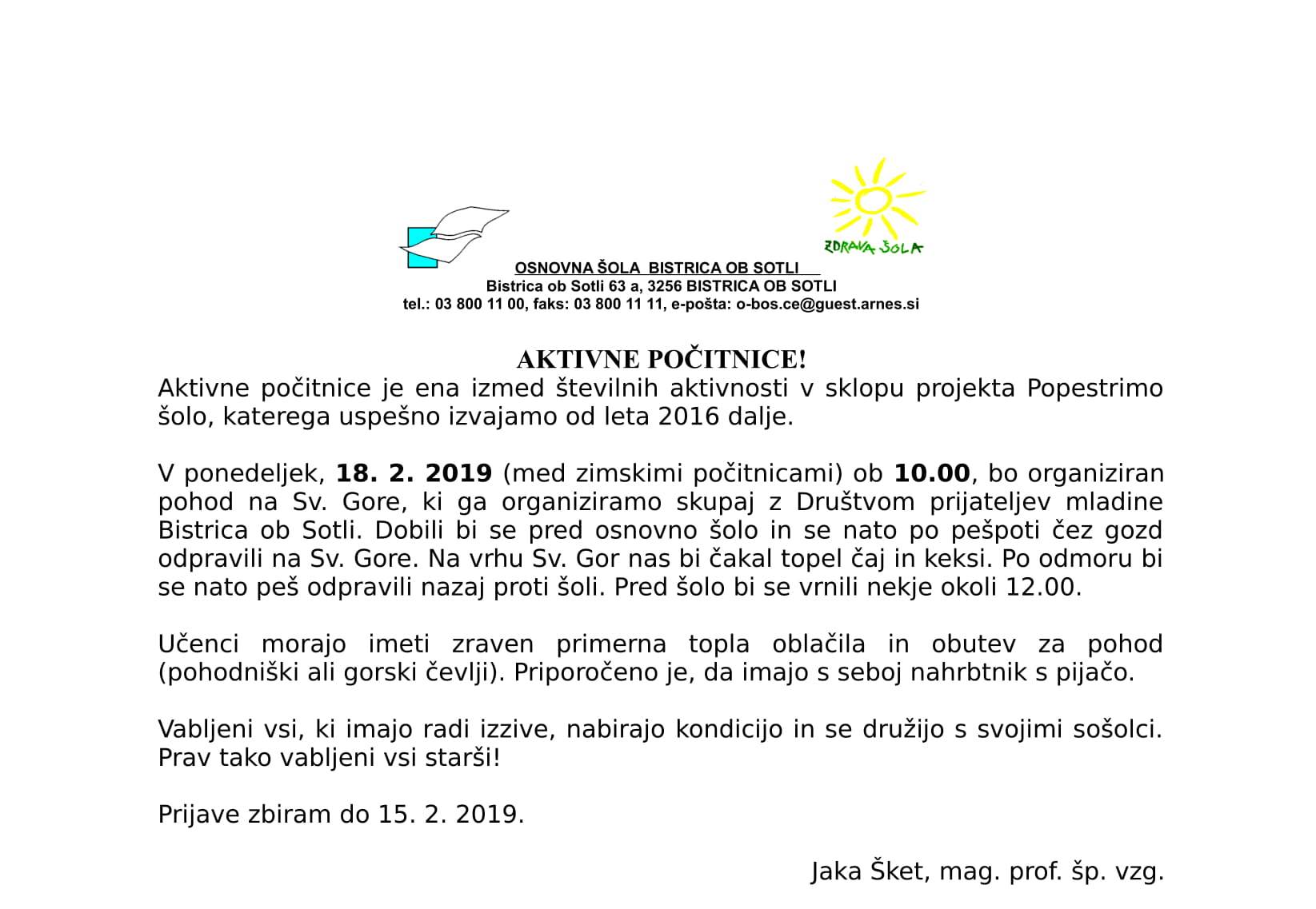 AKTIVNE ZIMSKE POČITNICE - POHOD NA SVETE GORE
