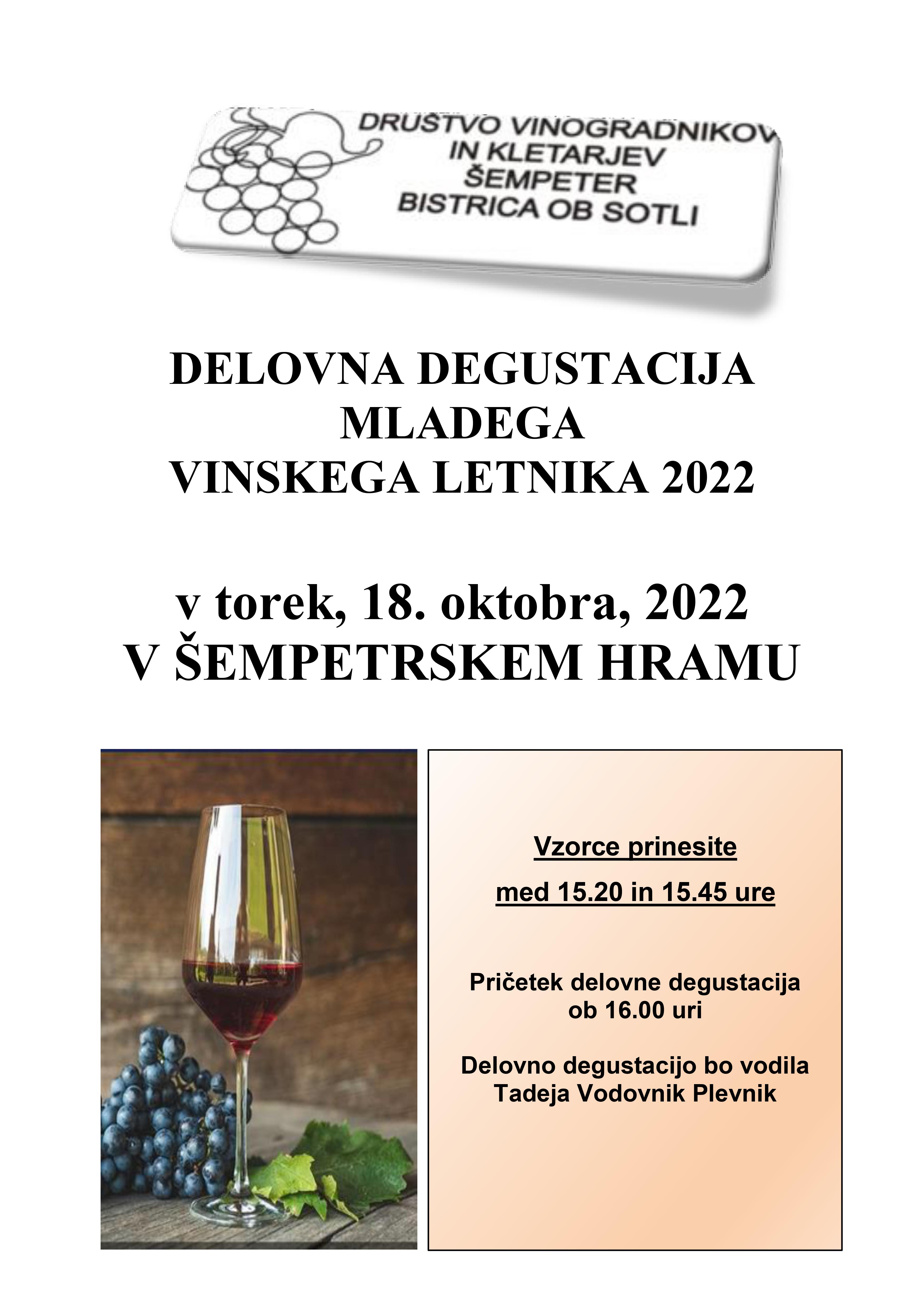 DELOVNA DEGUSTACIJA MLADEGA VINSKEGA LETNIKA 2022