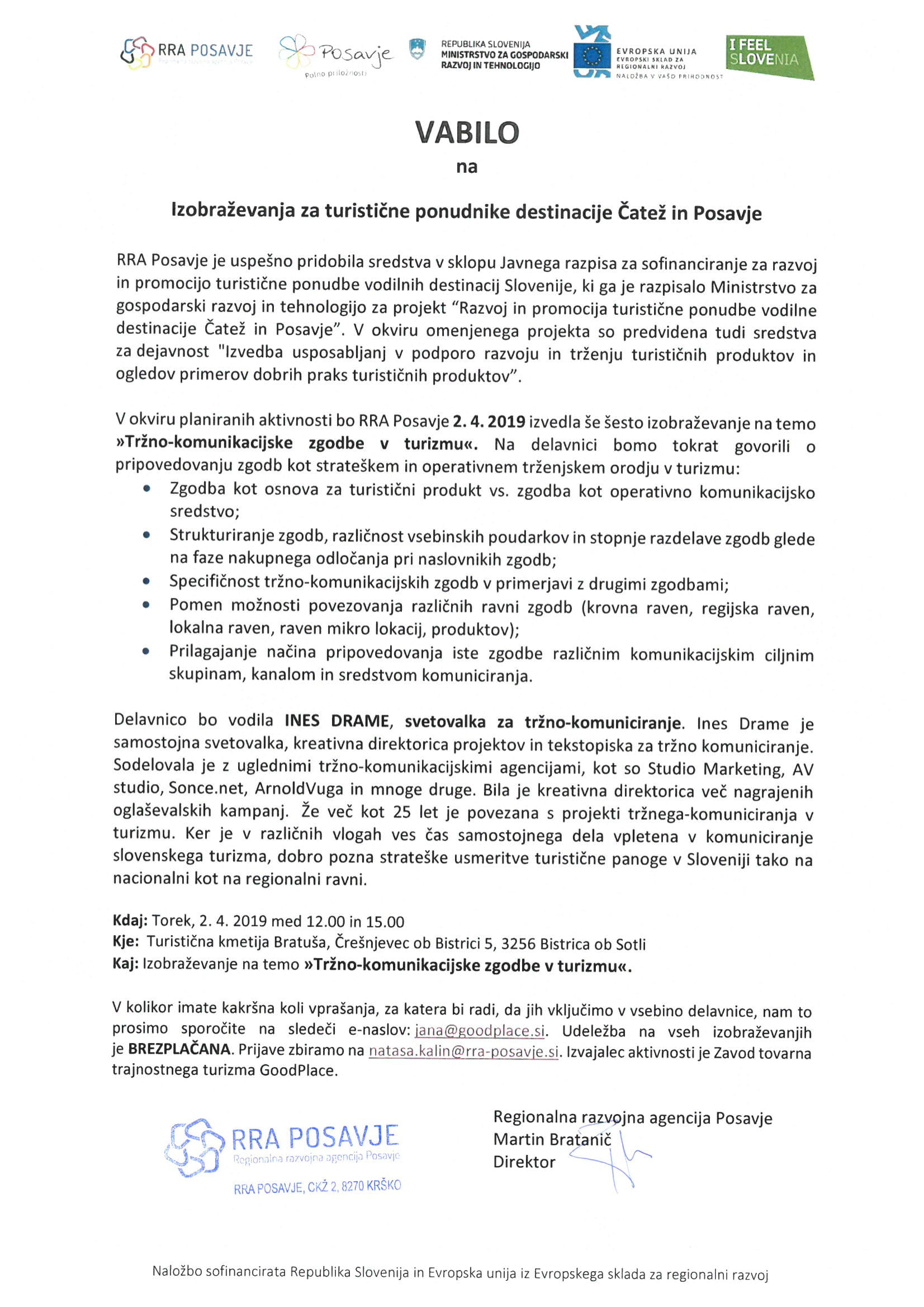 IZOBRAŽEVANJE NA TEMO »Tržno-komunikacijske zgodbe v turizmu«