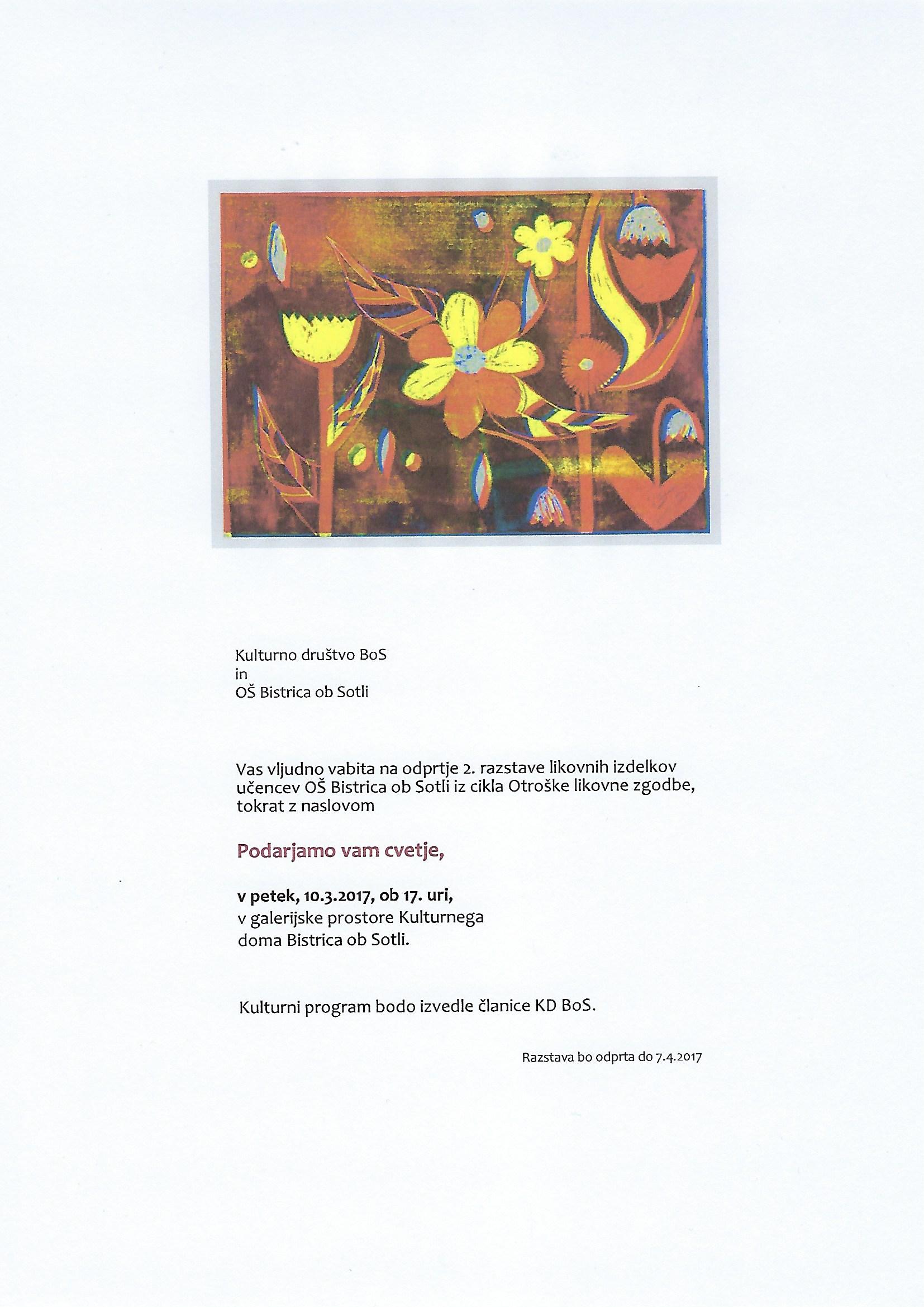 2. RAZSTAVE LIKOVNIH IZDELKOV UČENCEV OŠ BISTRICA OB SOTLI "PODARJAMO VAM CVETJE"