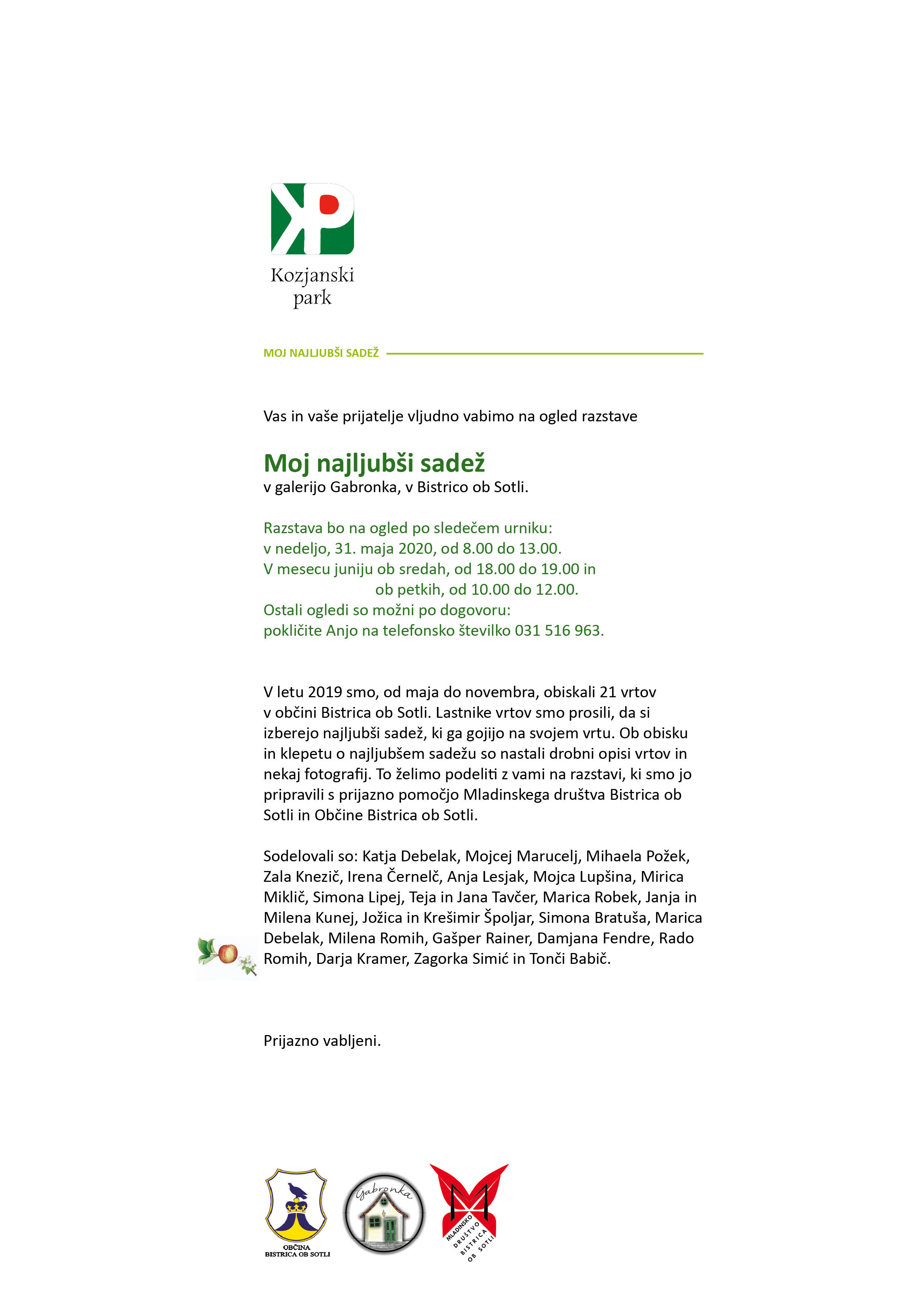 vas in vaše prijatelje vljudno vabimo na ogled razstave Moj najljubši sadež v galerijo Gabronka, v Bistrico ob Sotli.