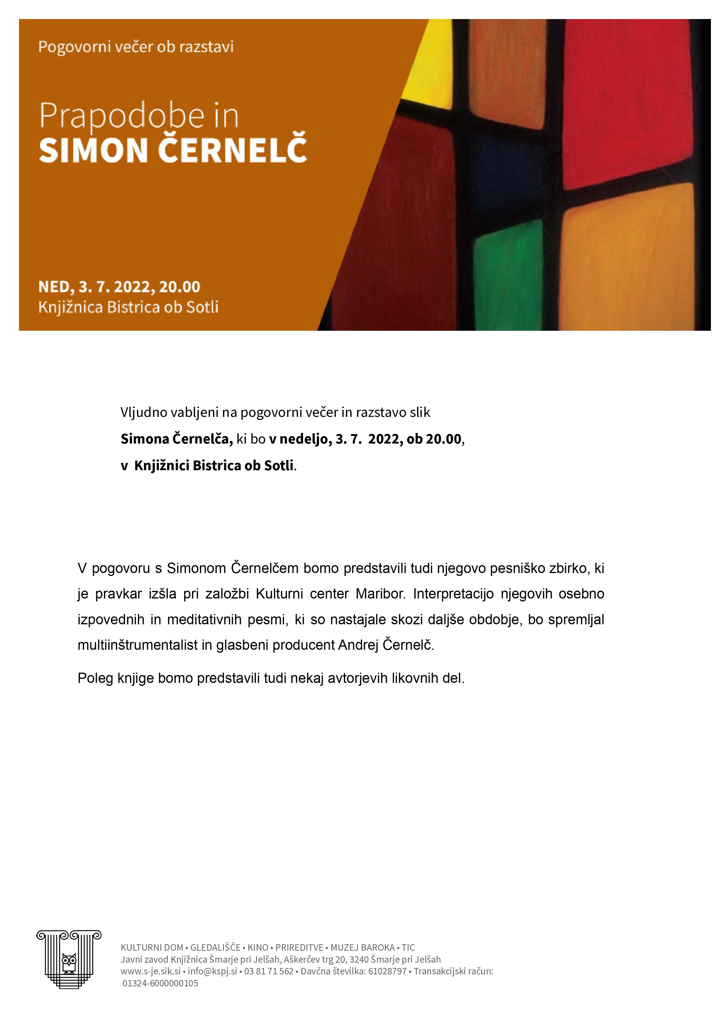 POGOVORNI VEČER IN RAZSTAVA SLIK SIMONA ČERNELČA