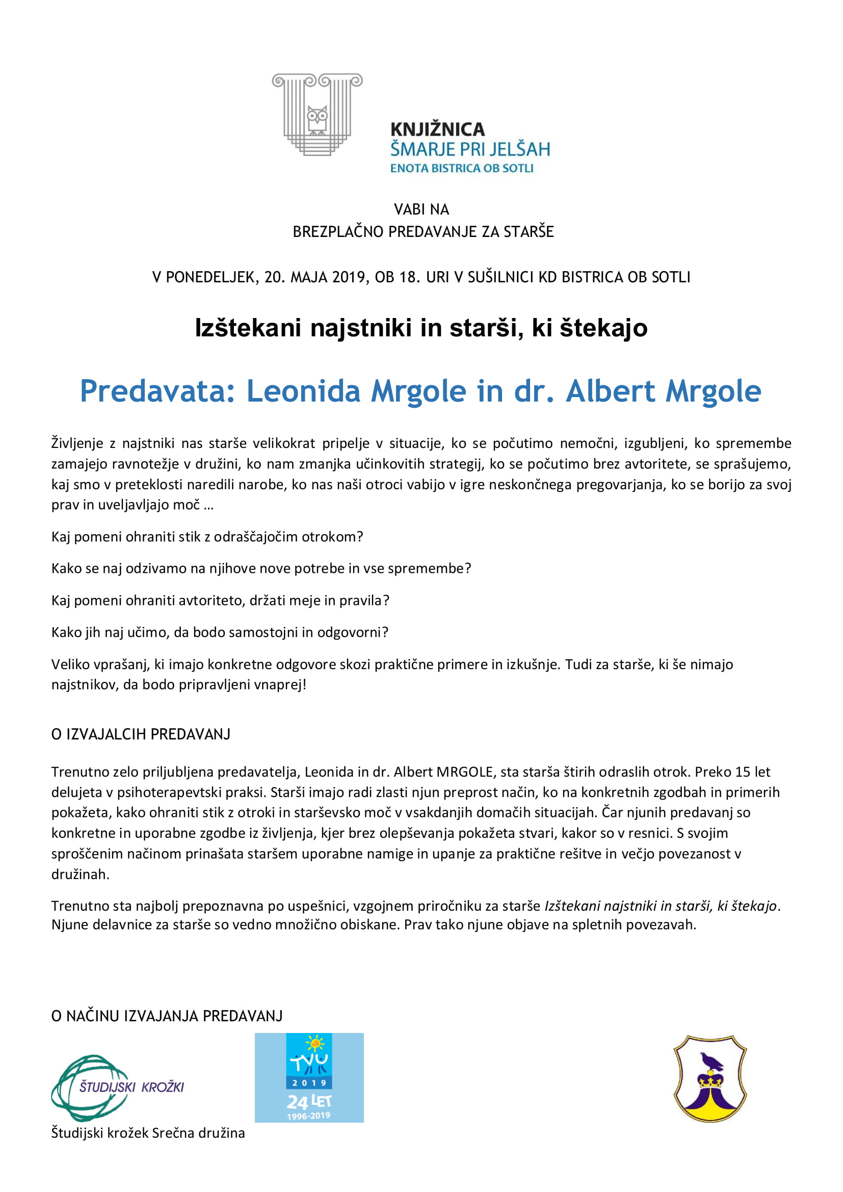 PREDAVANJE: IZŠTEKANI NAJSTNIKI IN STARŠI, KI ŠTEKAJO