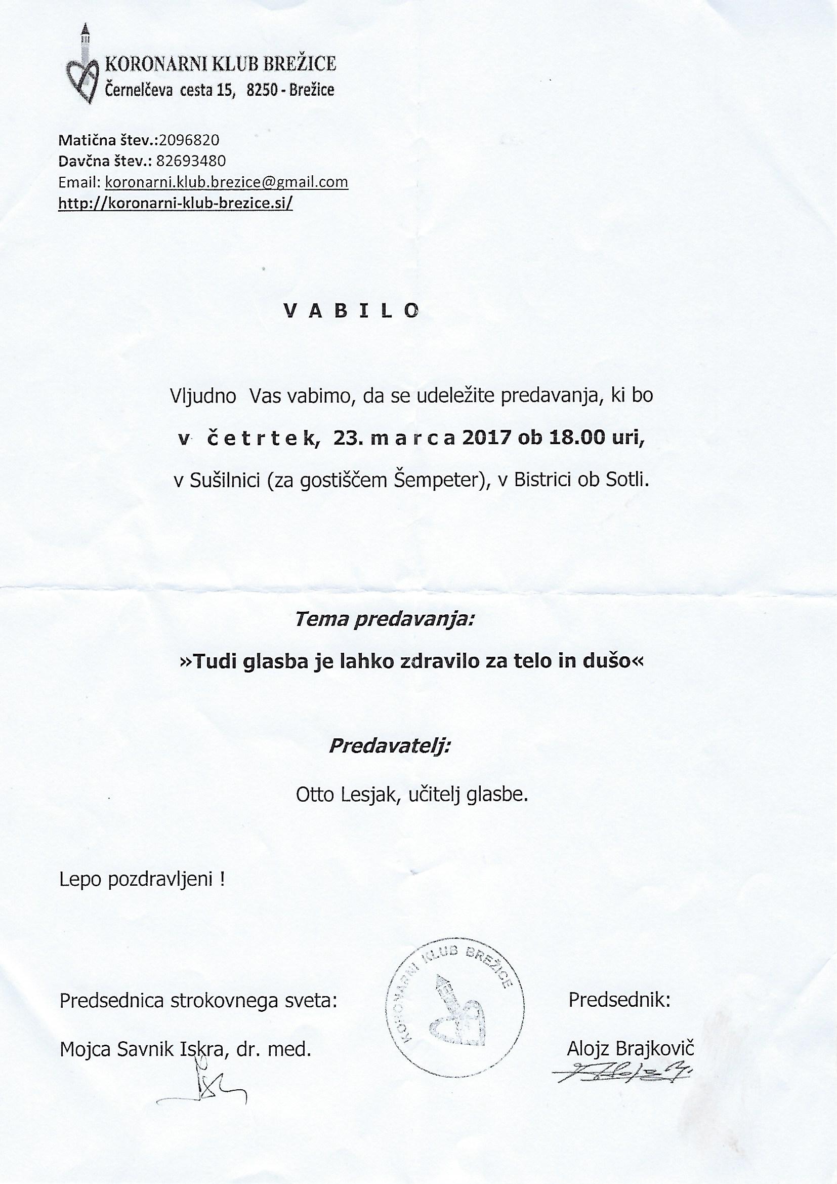PREDAVANJE "TUDI GLASBA JE LAHKO ZDRAVILO ZA TELO IN DUŠO"