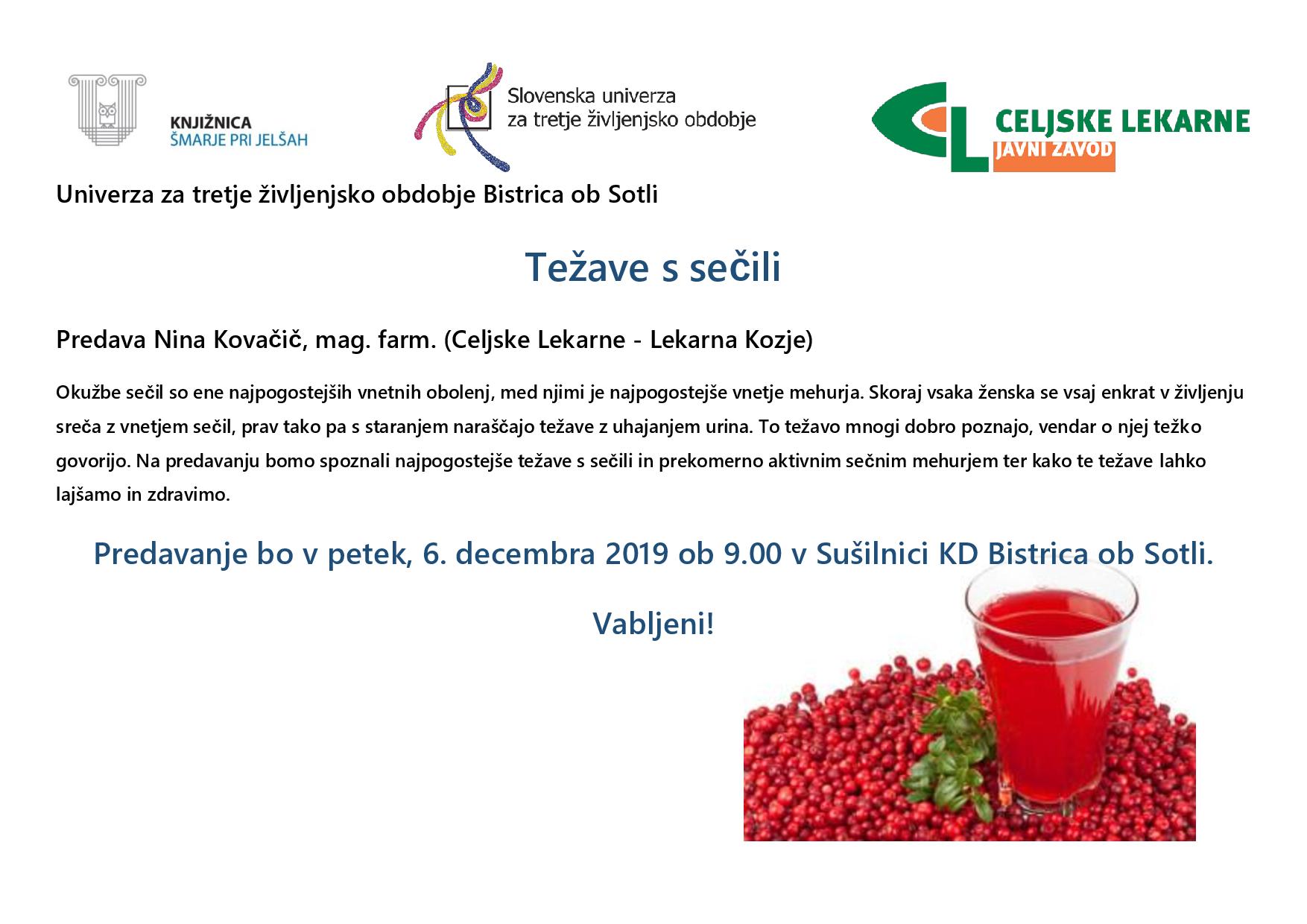 PREDAVANJE - Univerza za tretje življenjsko obdobje Bistrica ob Sotli - TEŽAVE S SEČILI