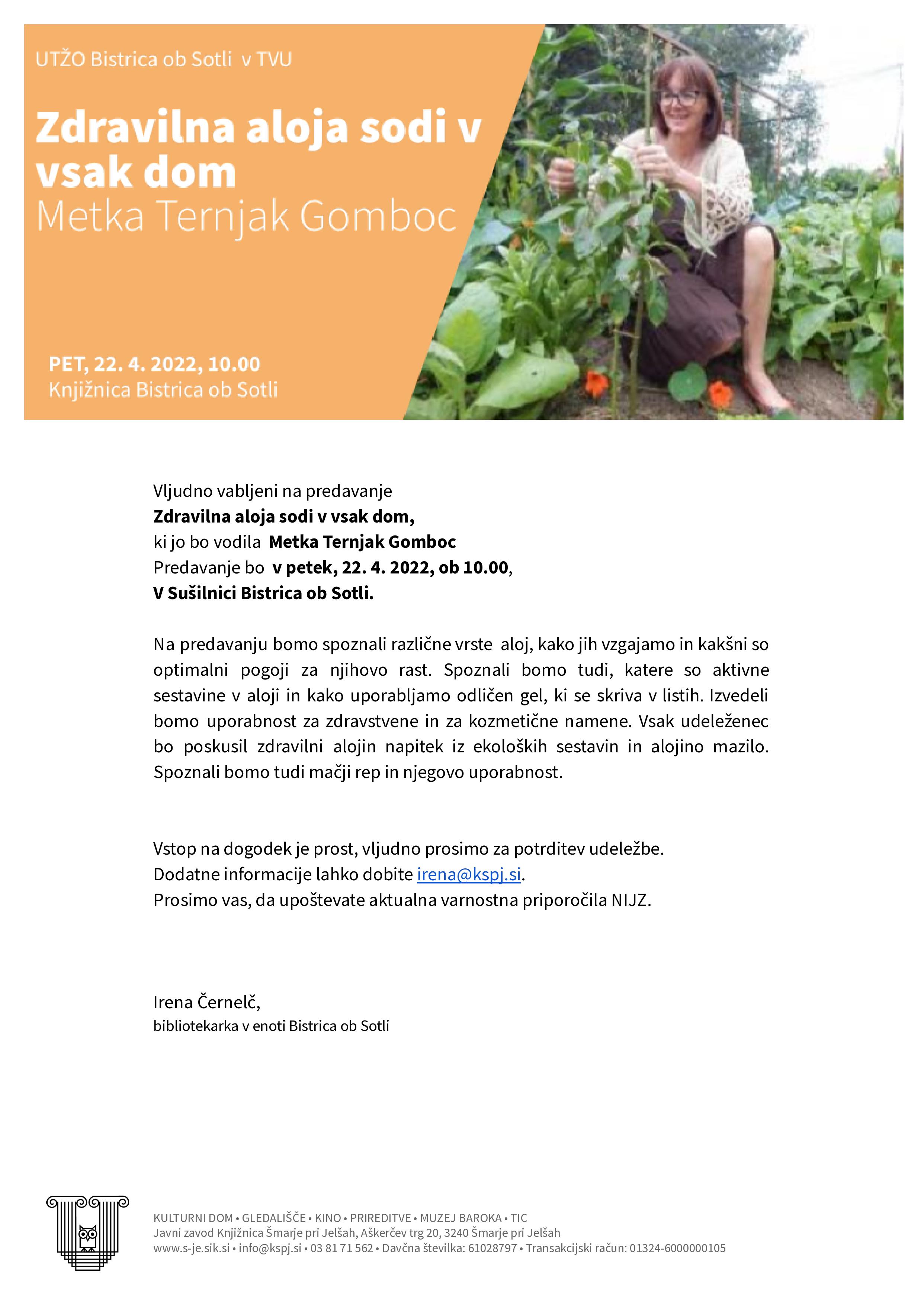 Predavanje "Zdravilna aloja sodi v vsak dom"