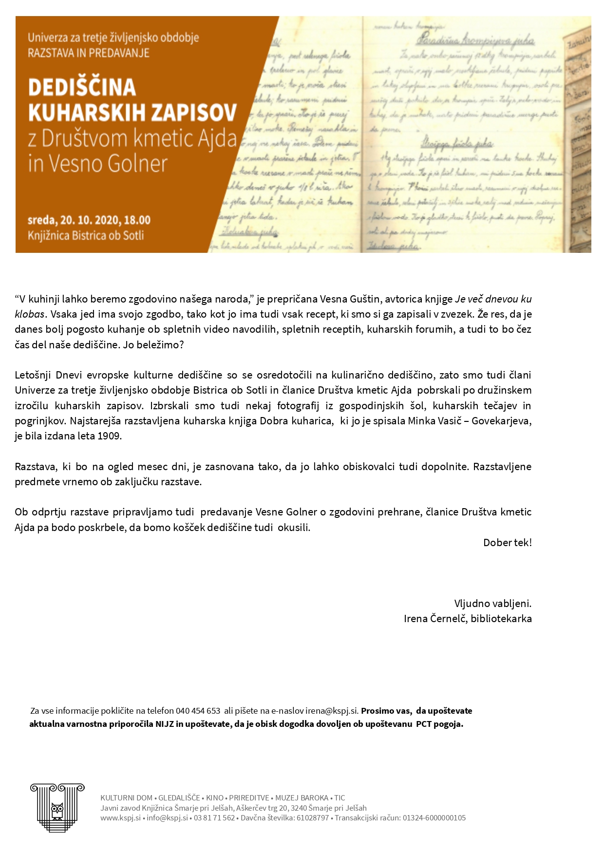 Razstava kuharskih knjig in zvezkov naših mam, babic, tašč.
