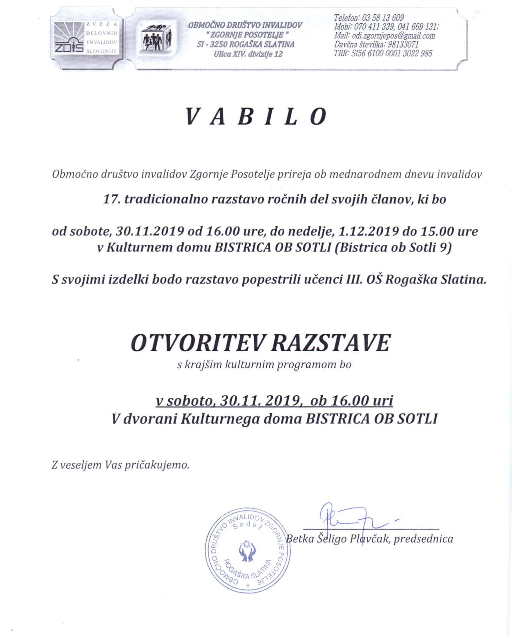 RAZSTAVA ROČNIH DEL OBMOČNEGA DRUŠTVA INVALIDOV ZGORNJE POSOTELJE