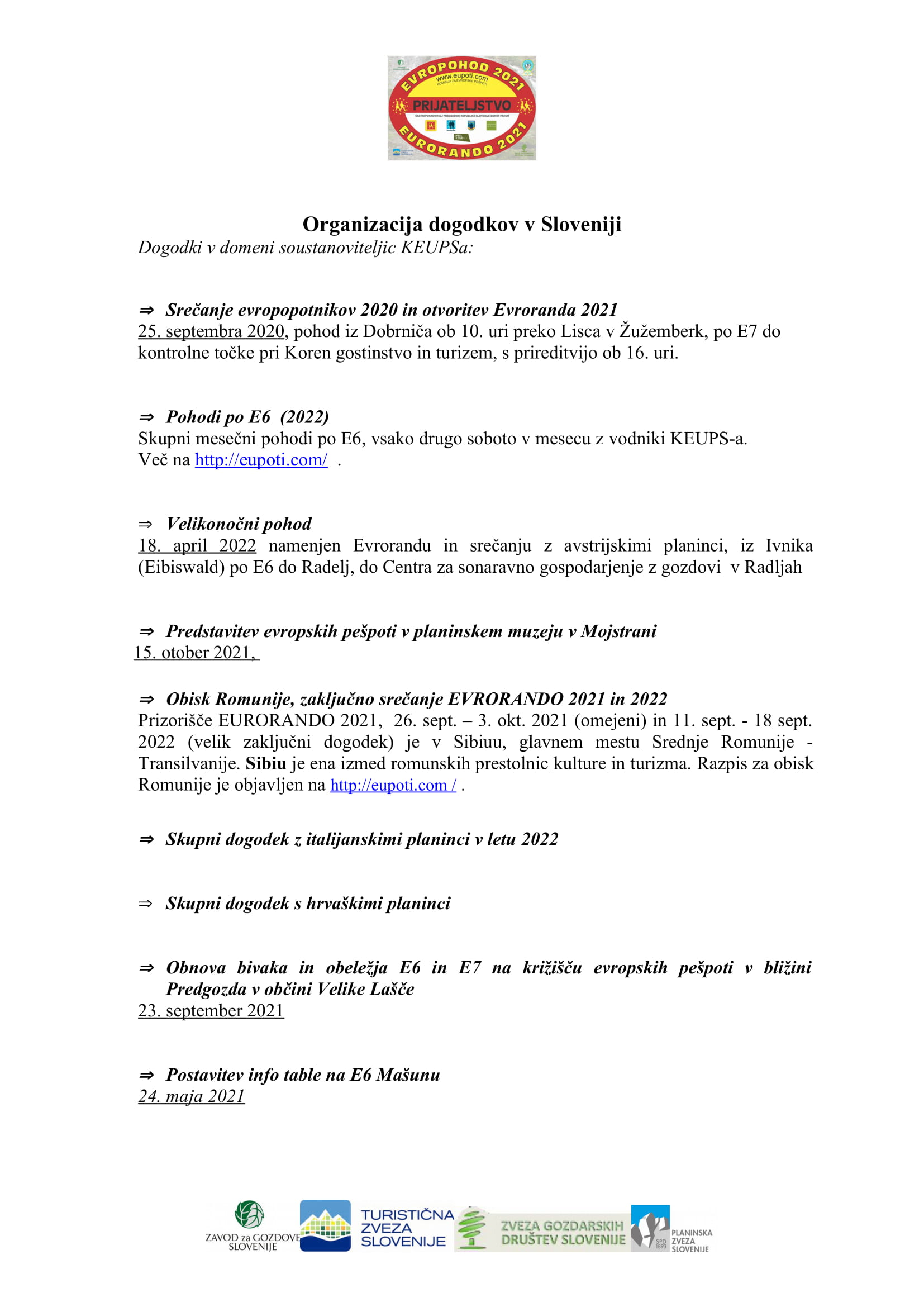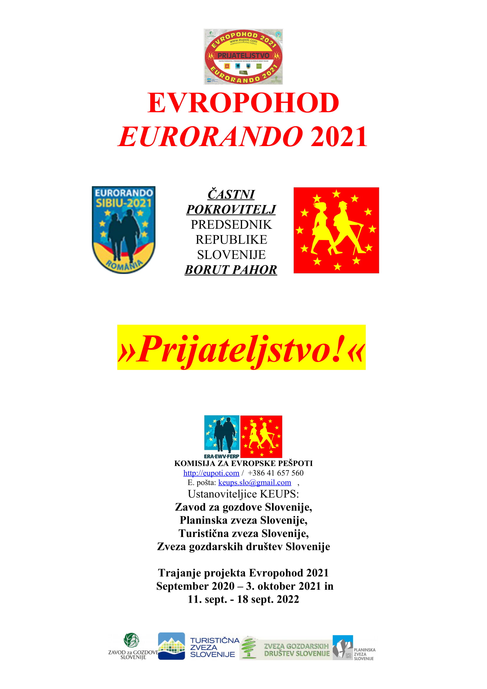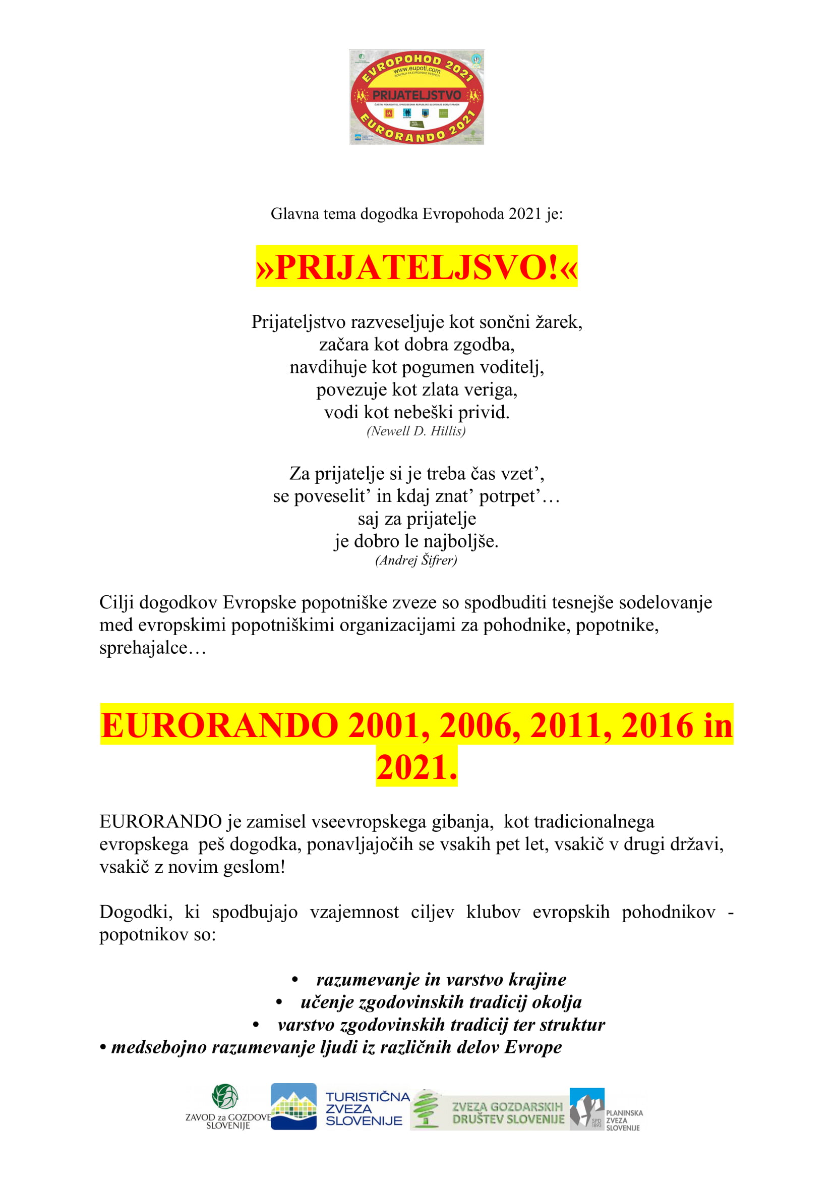 SREČANJE EVROPOPOTNIKOV 2021 in EVROPOHOD »EURORANDO« 2021