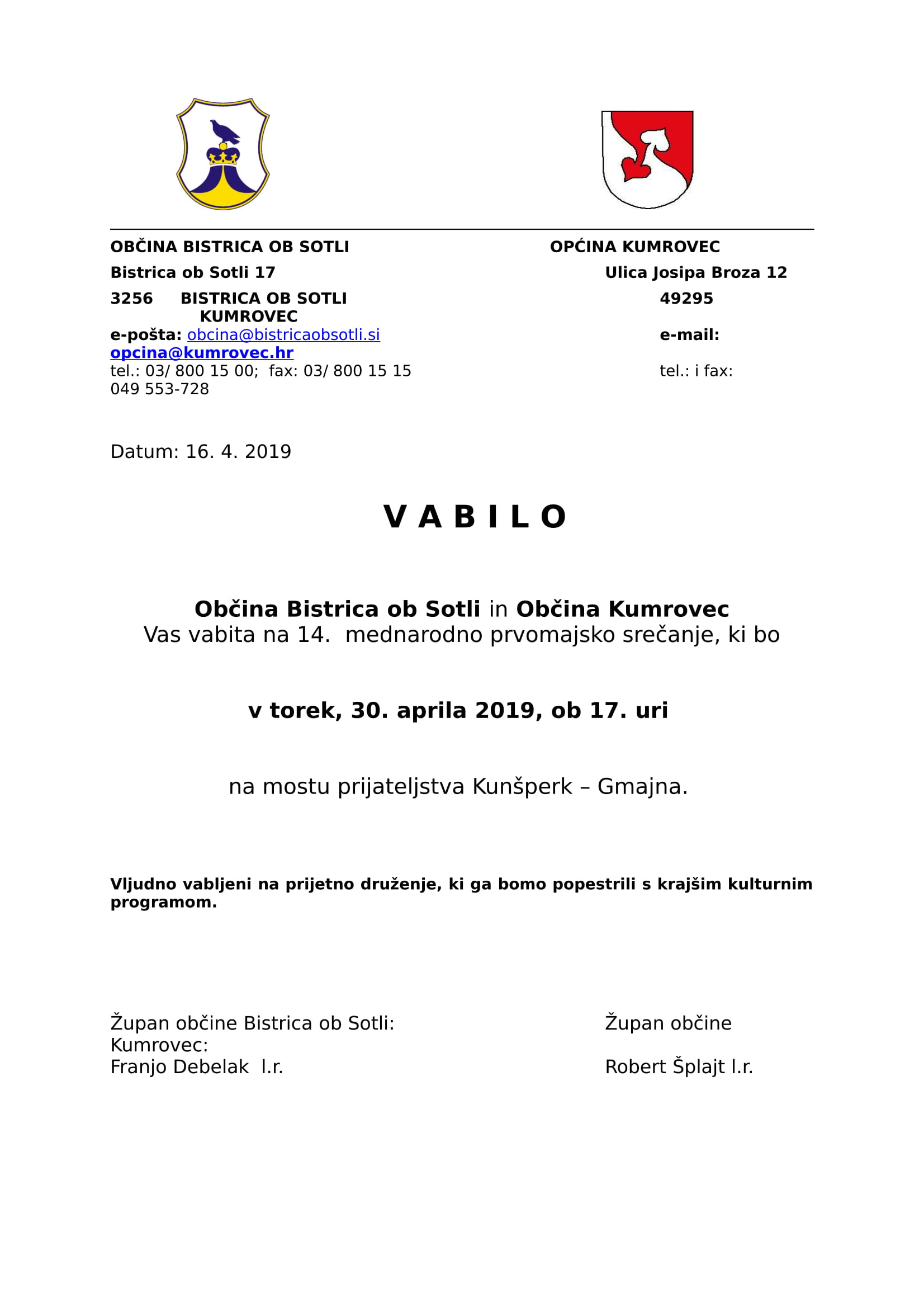PRVOMAJSKO SREČANJE NA MOSTU V KUNŠPERKU