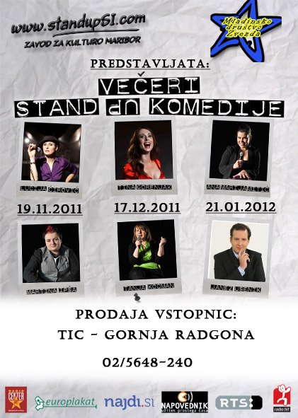 Večeri STAND UP komedije - 19. 11. 2011, 17. 12. 2011 in 21. 1. 2012 v Kulturnem domu Gornja Radgona