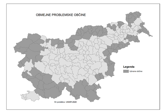 Kot obmejne občine razumemo tiste, ki so s strani Vlade RS opredeljene kot obmejne problemske občine (glej zemljevid).