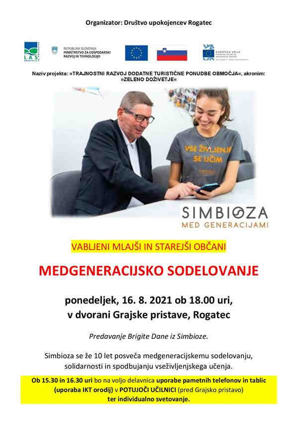 - predavanje MEDGENERACIJSKO SODELOVANJE bo potekalo ob 18.00 uri, v dvorani Grajske pristave.