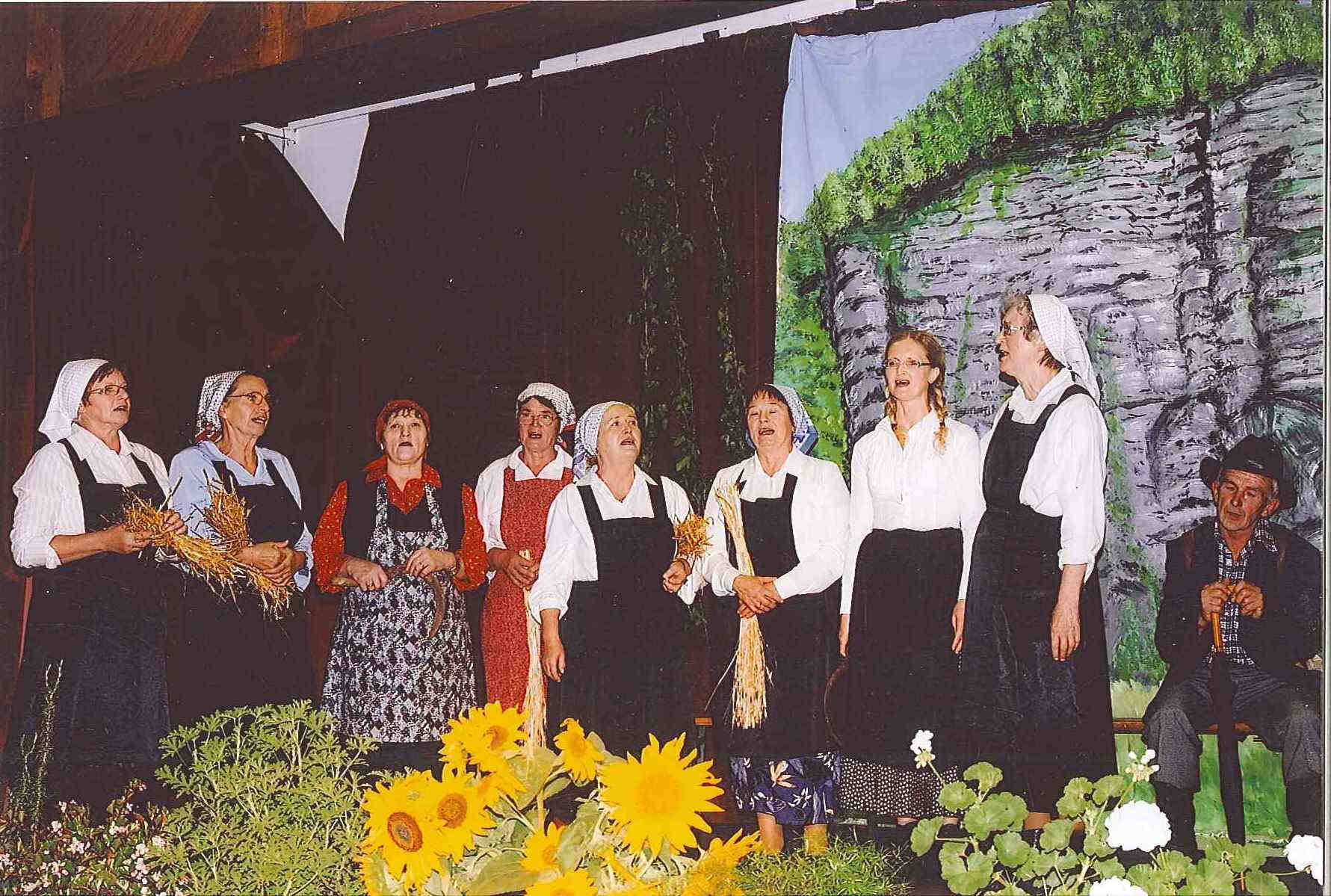 Pojemo na proslavah in srečanjih ljudskih pevcev, gojimo staro ljudsko pesem. Pozimi igramo igre iz kmečkega življenja v naših krajih, napisane po pripovedi starejših ljudi.