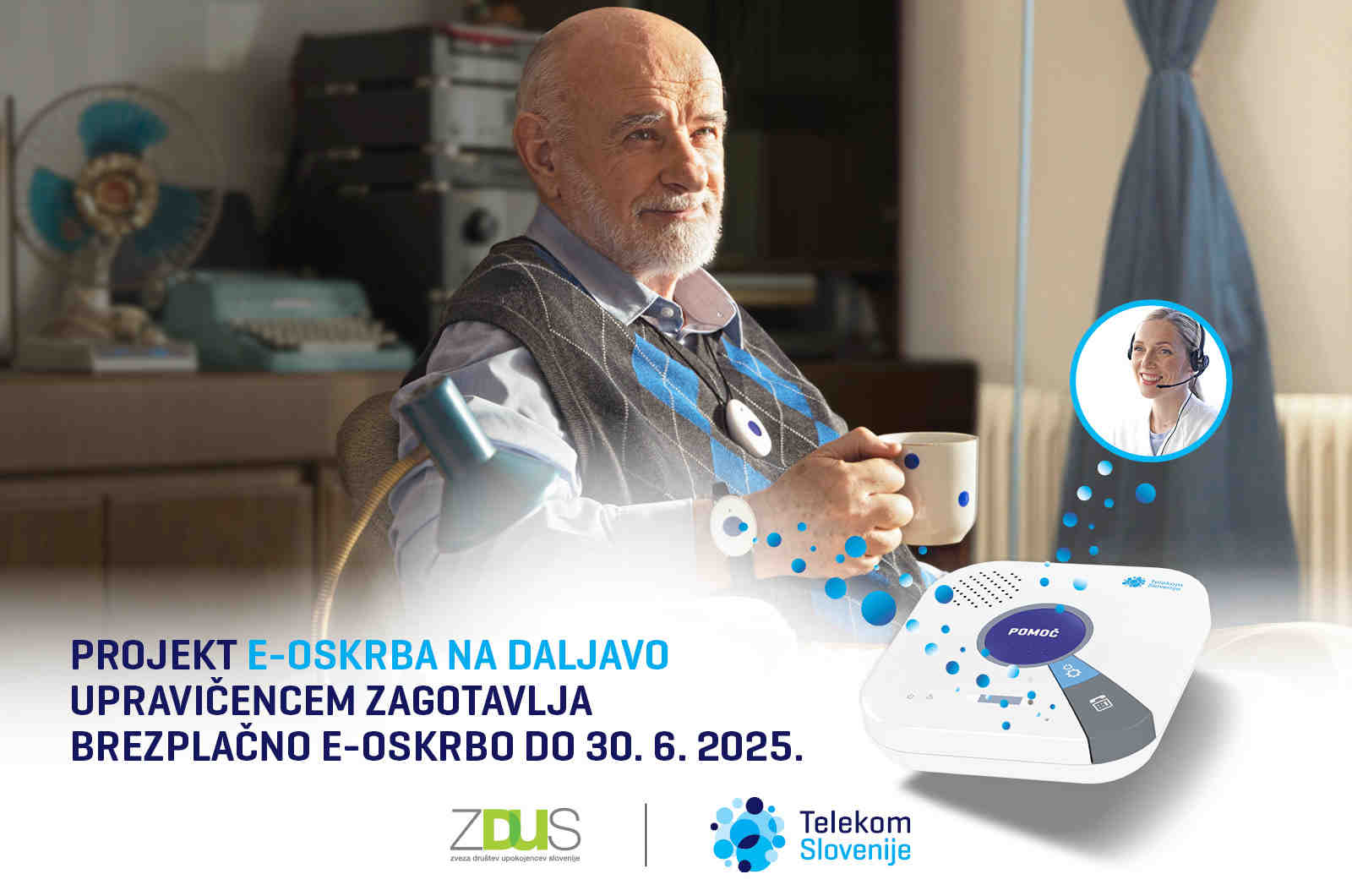 Ministrstvo za solidarno prihodnost je Telekom Slovenije skupaj z Zvezo društev upokojencev Slovenije (ZDUS) v okviru javnega razpisa »E-oskrba na daljavo« izbralo za izvajalca storitve E-oskrba. To pomeni, da je E-oskrba za najmanj 5.500 upravičencev od 1. oktobra letos do 30. junija 2025, to je do uveljavitve pravice do e-oskrbe iz Zakona o dolgotrajni oskrbi, ki področje sistemsko ureja, še naprej na voljo brezplačno.