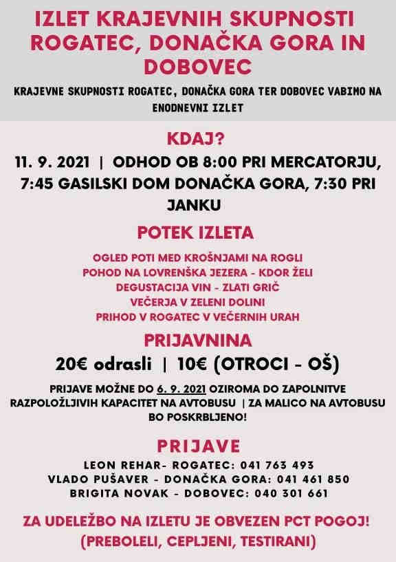 Domov » Krajevne skupnosti Rogatec, Donačka Gora in Dobovec vabijo na enodnevni izlet!