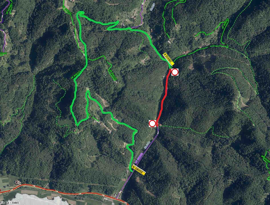 Občina Rogatec obvešča udeležence v prometu, da bo zaradi izvajanja del iz strani SIDG, v času od 03.01.2024 do 14.01.2024 med 7.00 in 17.00 uro, popolna zapora javne kategorizirane občinske ceste LC 358023 Zg. Log – Hustič, med stac. 2.754 m in 3.228 m, kot je označeno na priloženi skici.