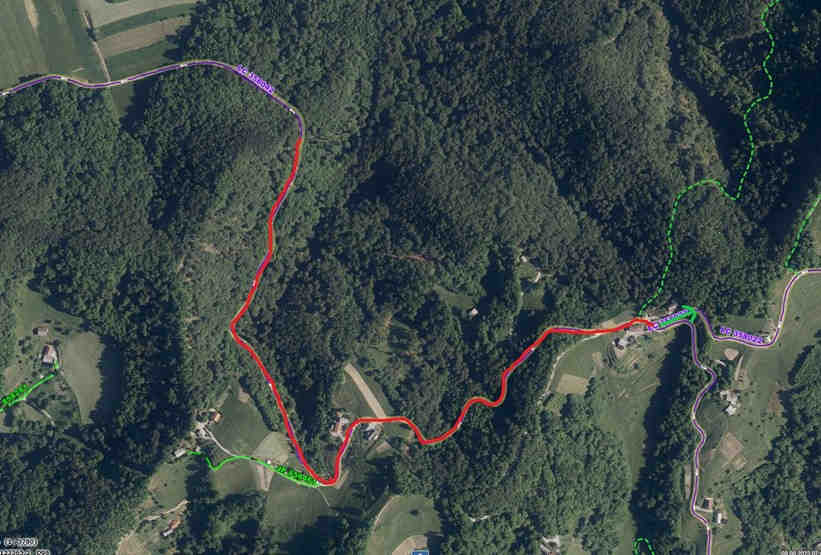 - javne kategorizirane občinske ceste LC 358042 Zg. Log – Žahenberc, v obsegu kot je označeno na skici. Obvoz je možen po LC 358022 Log – Zg. Log.