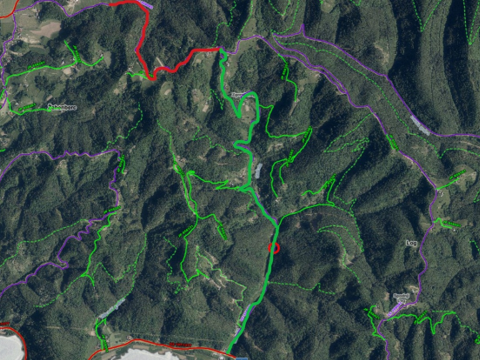 - LC 358042 Z. Log – Žahenberc med stac. 0 in 1717m. Obvoz bo skladno s prometno signalizacijo urejen na državno cesto Dobovec – Rogatec, po LC 358023 Zg. Log – Hustič