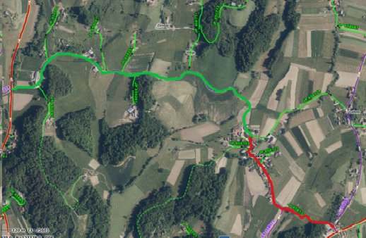 - JP 858731 Gasilski dom ter LC Tlake med stac. 1635 in 2060m. Obvoz bo skladno s prometno signalizacijo urejen na državno cesto Majšperk – Rogatec, po LC 358071 v smeri Fl. mosta