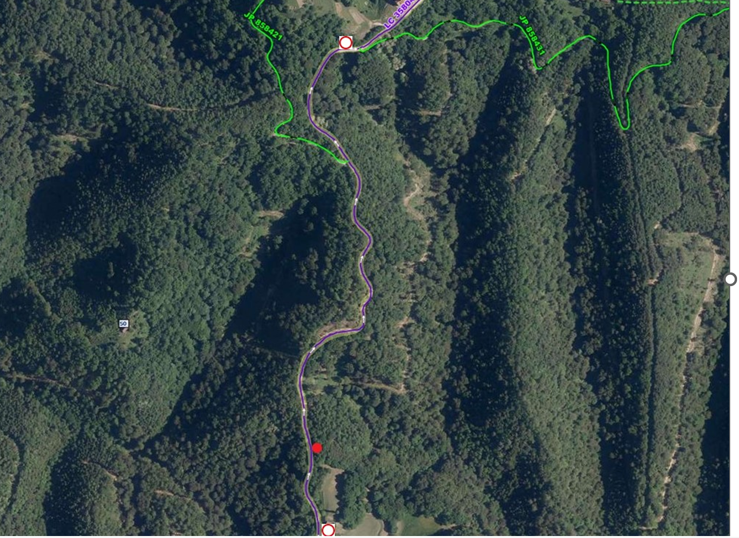 Obvoz bo omogočen po javni kategorizirani občinski cesti LC 358023 Zg. Log – Hustič ali LC 358042 Zg Log – Žahenberc.