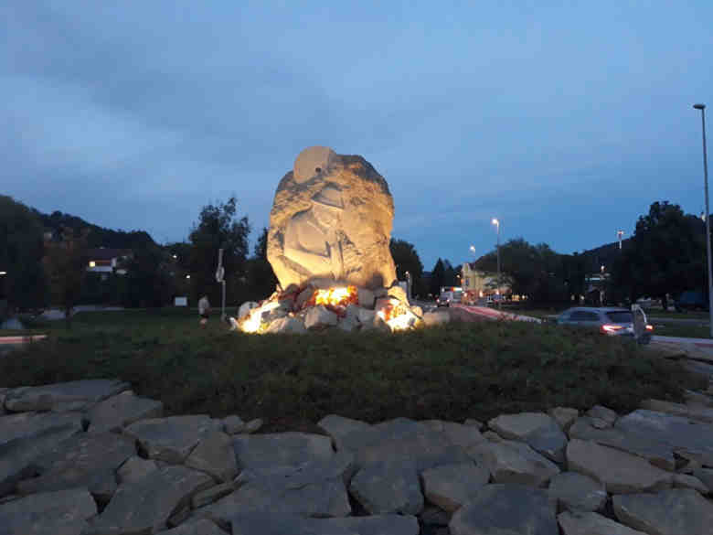 »Krožišče v Rogatcu je v zaključni fazi. Avtor kipa in postavitve je kipar Franci Černelč.