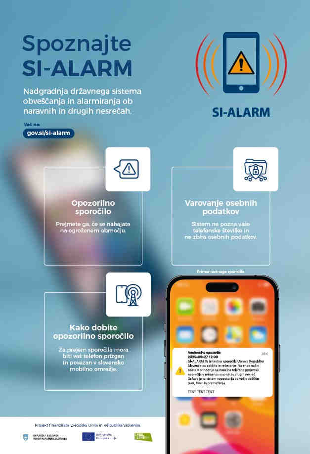 Uprava RS za zaščito in reševanje (URSZR) obvešča, da bo v soboto, 27. 9. 2025, ob 12. uri javno testiranje novega Sistema javnega obveščanja in alarmiranja po mobilnih javnih omrežjih (SI-ALARM).