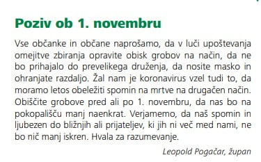 Poziv župana ob 1. novembru dnevu spomina na mrtve