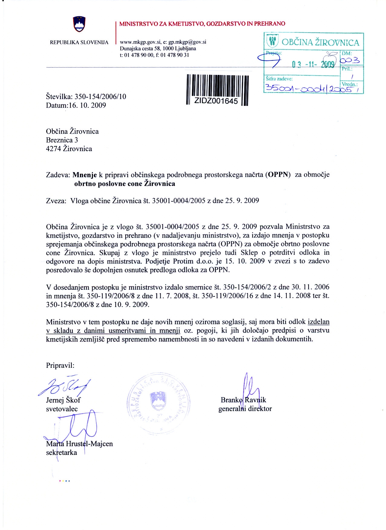 dopis OŽ – poziv za pozitivno mnenje na MKGP (25.9.2009)