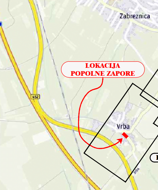 Prestavitev elektroenergetske infrastrukture iz objekta z naslovom Vrba 7 in postavitev nove kabelske omarice bo potekala 30. 9. 2021 in 1. 10. 2021, med 7. in 15. uro, izvedba rekonstrukcije objekta z naslovom Vrba 7 pa bo potekala 4. 10. in 5. 10. 2021, od 7. do 17. ure. Zaradi navedenih razlogov bo potrebna popolna zapora kategoriziranih občinskih cest z oznako JP 650182 in LC 150041 na zemljišču s parc. št. 1143/7 k.o. Zabreznica.