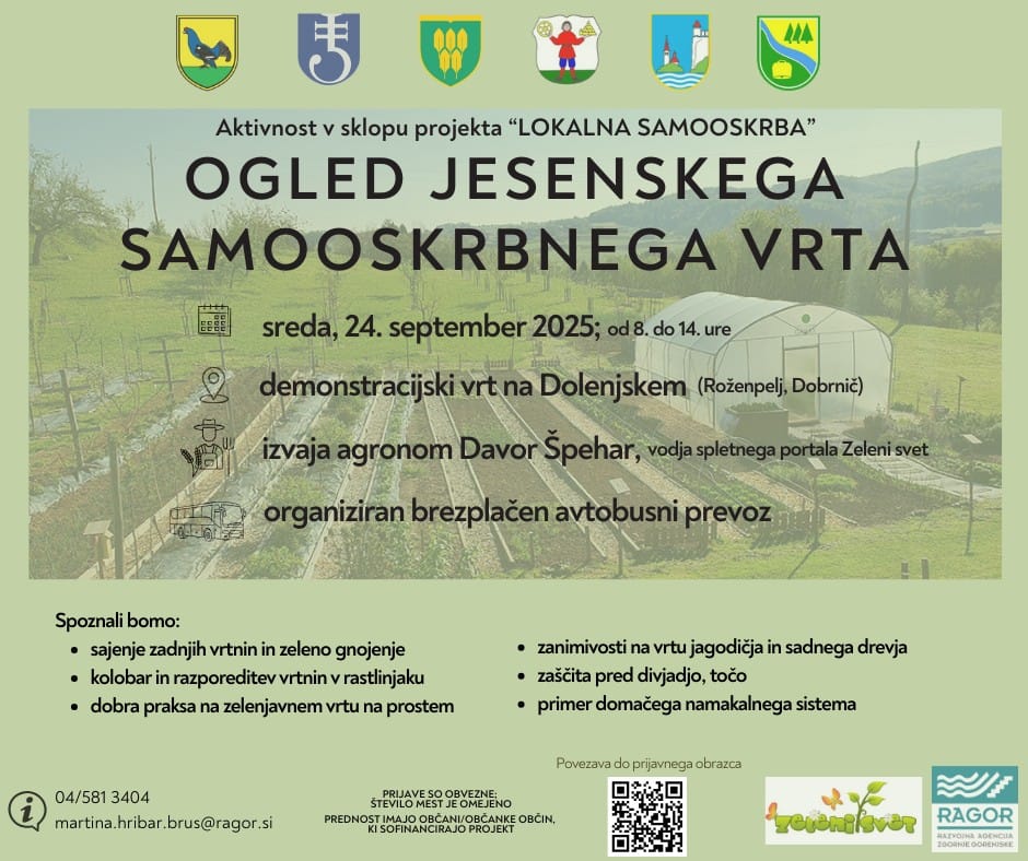 V sredo 24. septembra 2025 organiziramo OGLED SAMOOSKRBNEGA JESENSKEGA VRTA, ki je del projekta LOKALNA SAMOOSKRBA.