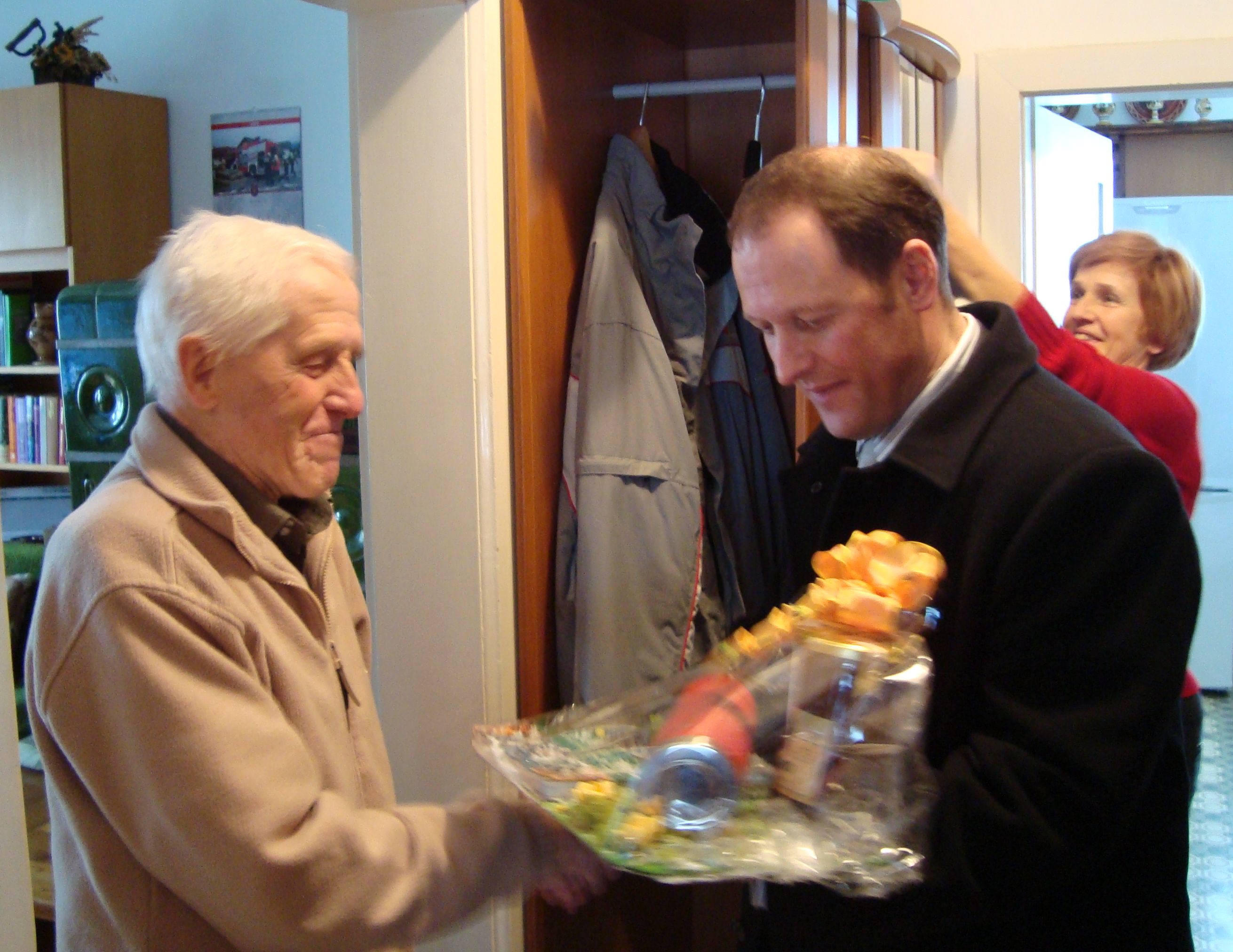 V ponedeljek 19. januarja smo z županom in predstavnicami Društva upokojencev Žirovnica, Jano Lavrenčič, Jerco Tičar in zaupnico Ivanko, obiskali našega občana Vincenca Zupana iz Sela pri Žirovnici. Gospod je praznoval svoj 95. rojstni dan. Zadnja leta sicer živi pri hčerki v Ljubljani, vendar se z družino ob vikendih rad vrača v domači kraj. S hčerko Vando sta nam pripravila prisrčen sprejem. Hiša je obdana s polno pozitivne energije in smeha, česar ni manjkalo tudi na obisku. Ob polni mizi dobrot je stekel sproščen pogovor, ki je privedel do marsikatere anekdote. Gospod Vincenc je pri svojih zavidljivih letih odličnega zdravja in še bistre glave. Nekoliko mu le nagaja vid. Skozi pogovor nam je zaupal zgodbo kje in kako je služil vojsko v takratni (bivši) Jugoslaviji. Zelo rad je v krogu svoje družine, dveh hčera in sina, petih vnukov in ene vnukinje ter dveh pravnukov.