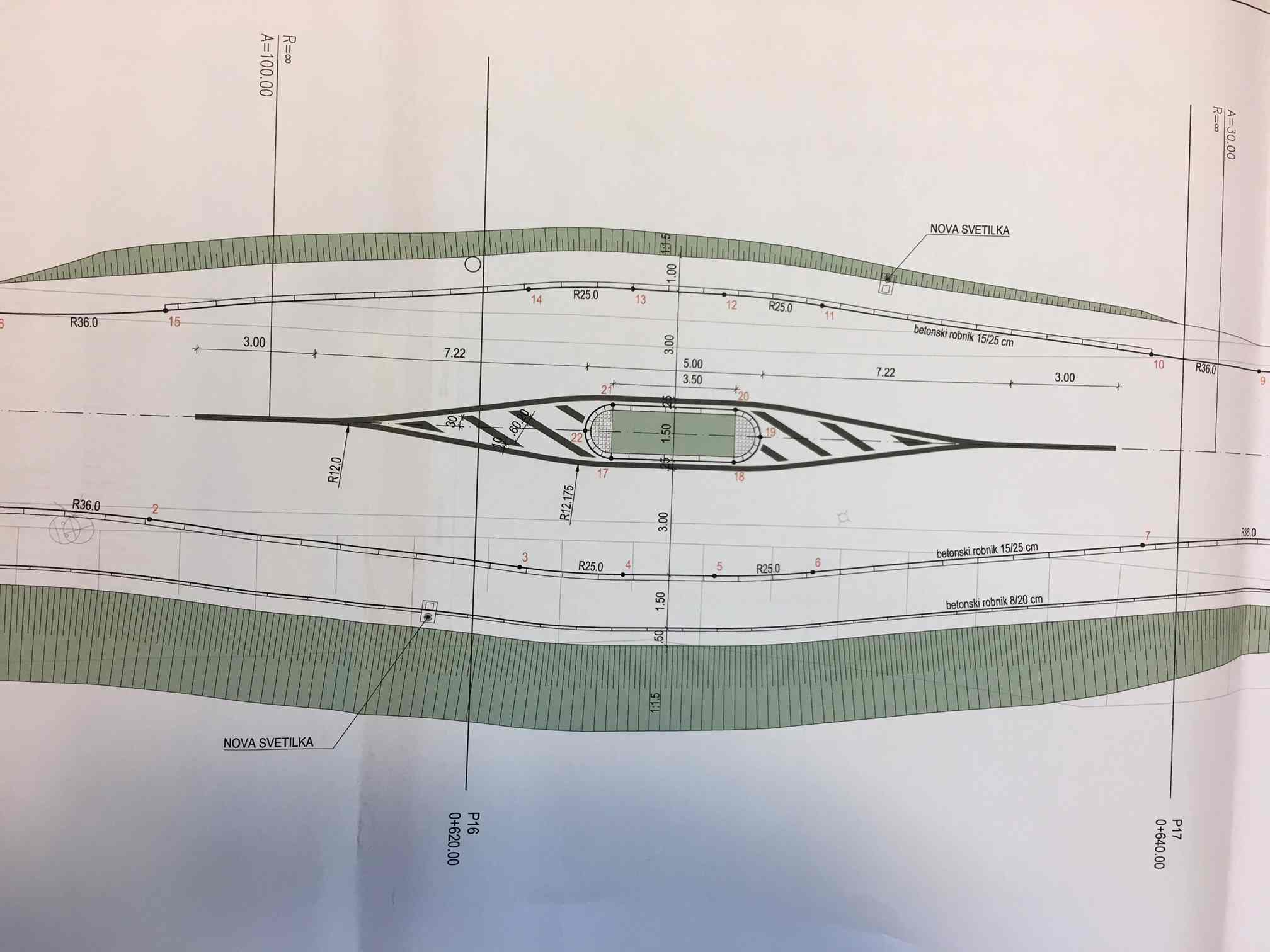 Pred naseljem Breg iz smeri Most bomo ob pločniku izvedli tudi ukrep za umiritev prometa (zmanjšanje hitrosti) s sredinskim otokom, ki ga bomo ustrezno hortikulturno uredili.