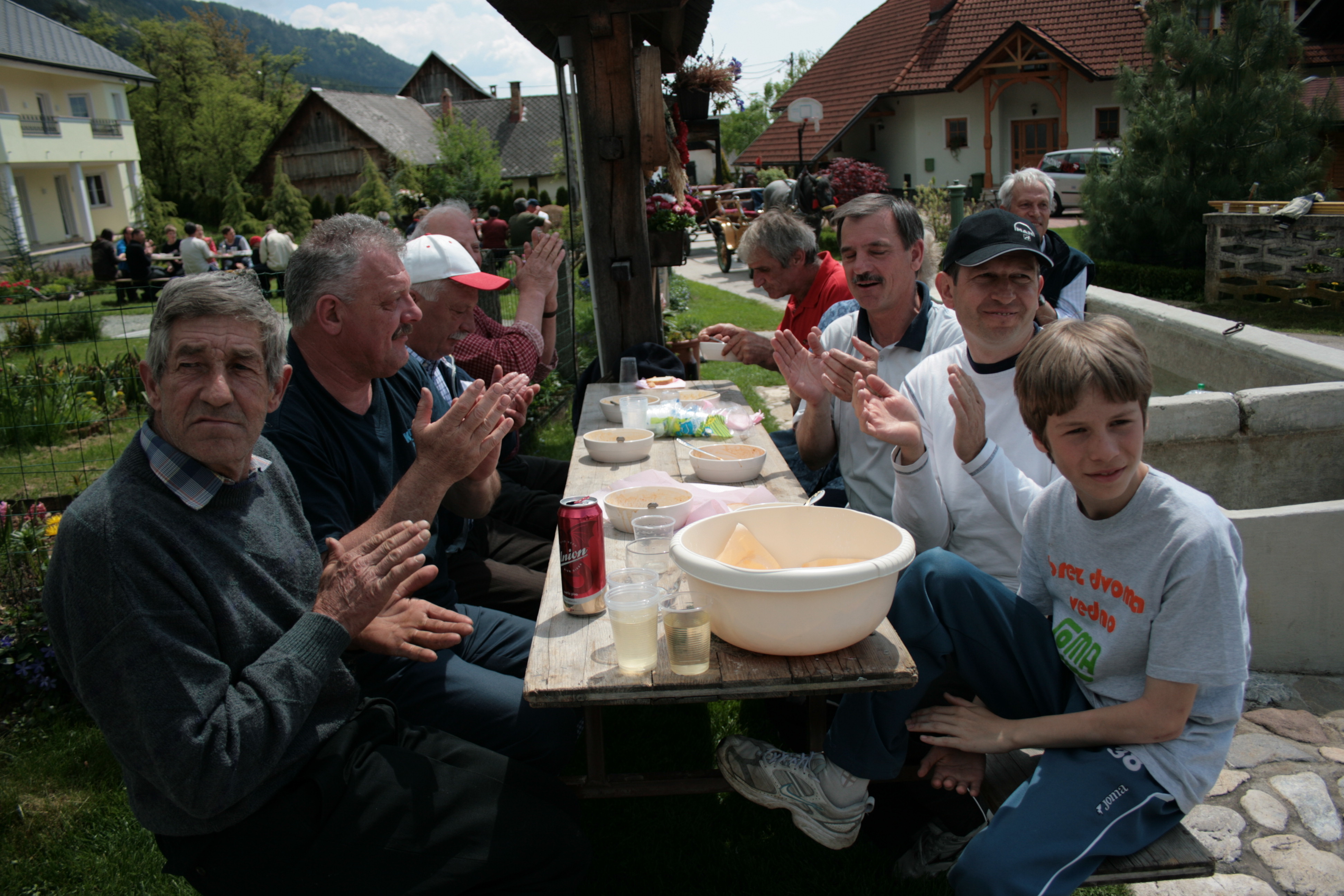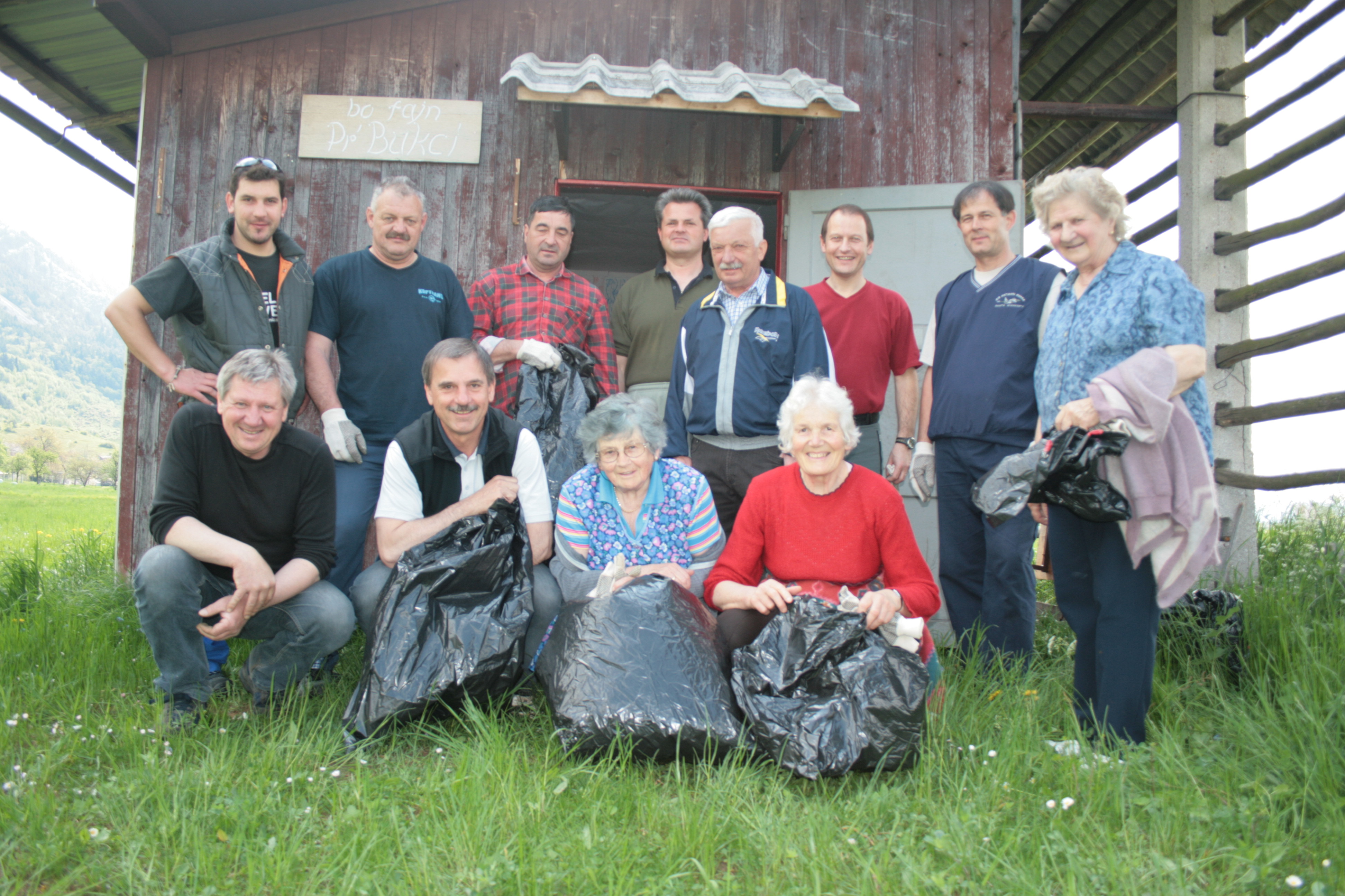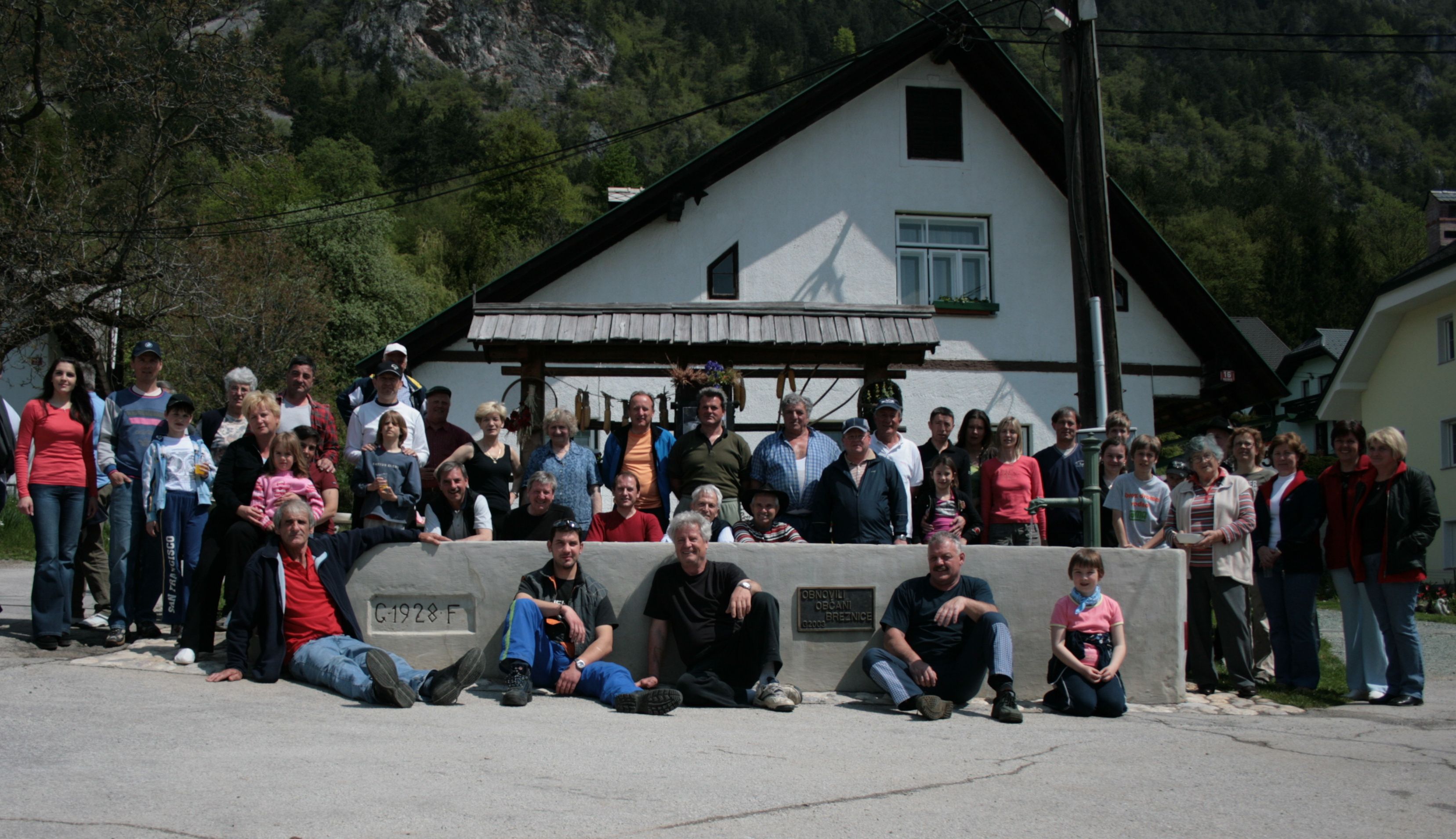 Utrinek iz čistilne akcije na Breznici in družabnega srečanja ob 80. letnici postavitve in 5. obletnici obnove vaškega korita, na dan 4. maja 2008.