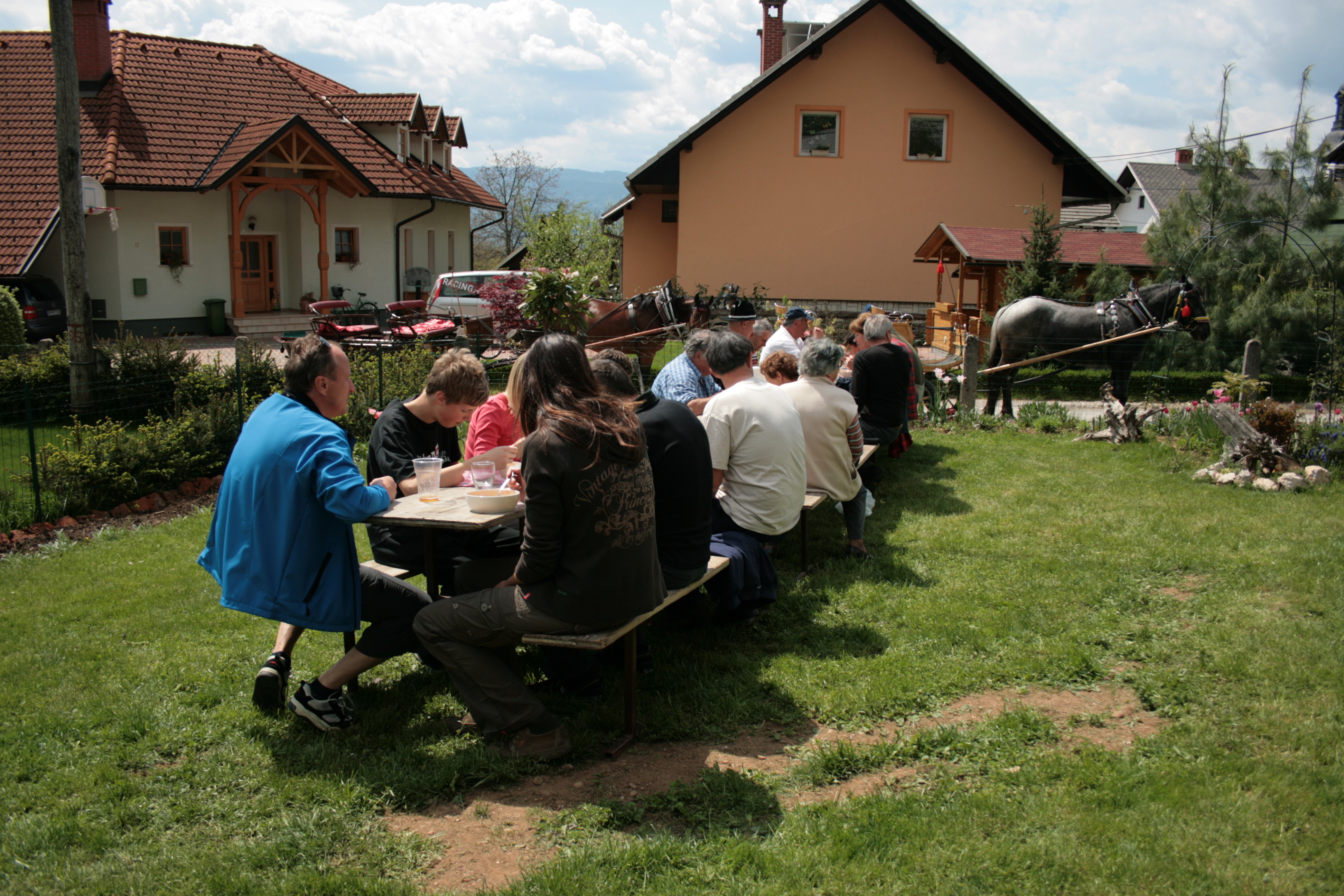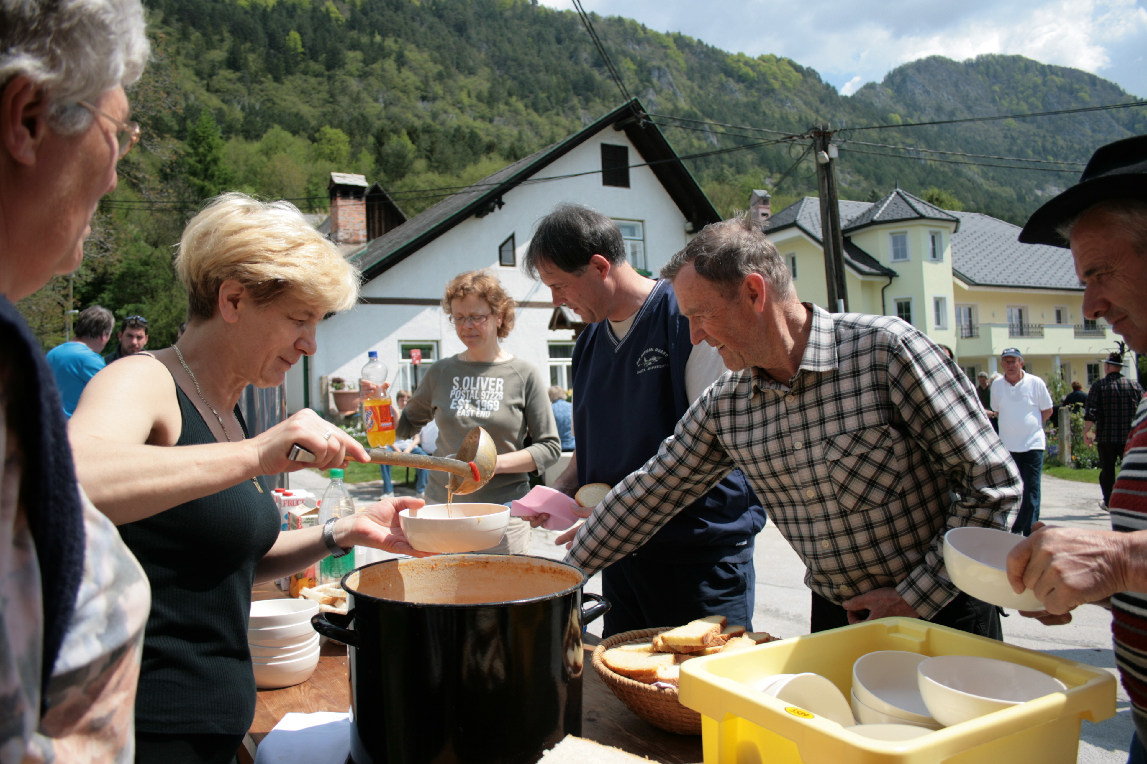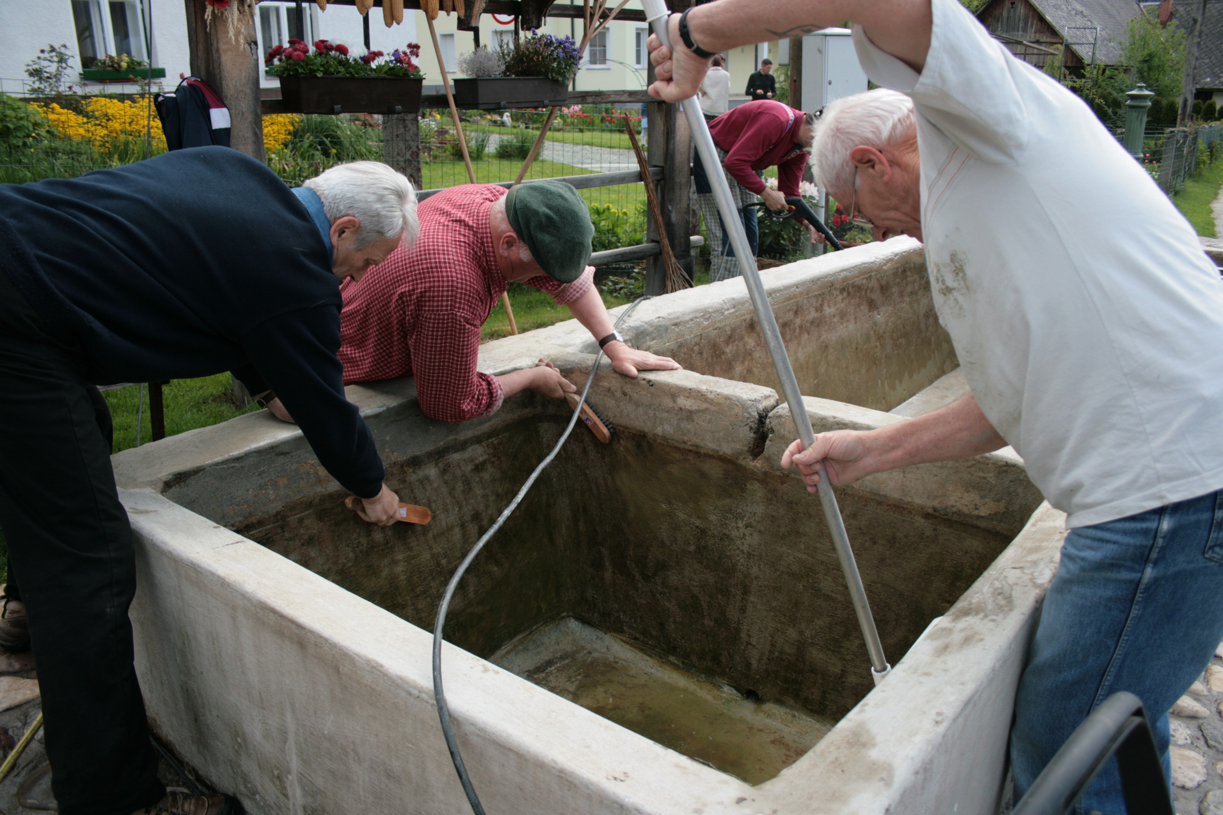 Utrinek iz čistilne akcije na Breznici in družabnega srečanja ob 80. letnici postavitve in 5. obletnici obnove vaškega korita, na dan 4. maja 2008.