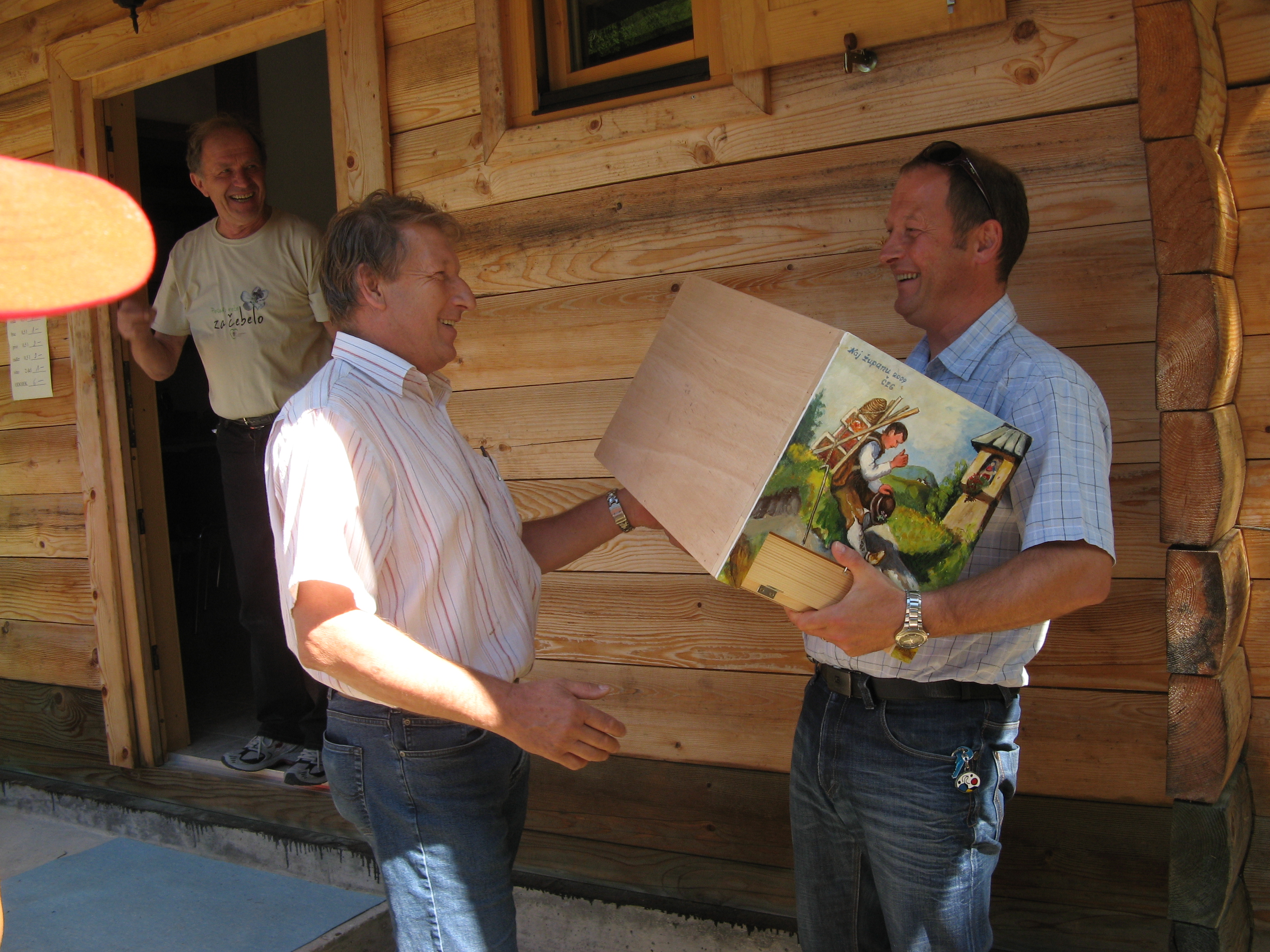 Čebelarska zveza Gorenjske organizira vsako leto, prvo nedeljo v avgustu srečanje čebelarjev na IZOBRAŽEVALNO VZREJNEM CENTRU ZELENICA. Na tem srečanju podeli sedem satni panj s čebelami. Letos ga je kot naj župan Čebelarske zveze Gorenjske, za leto 2009 prejel gospod LEOPOLD POGAČAR, župan občine Žirovnica.V kratkem nagovoru se je zahvalil vsem prisotnim čebelarkam in čebelarjem in napovedal tudi svoje udejstvovanje v čebelarstvu v bližji prihodnosti. Takoj ko mu bo čas dopuščal, bo poskrbel za postavitev čebelnjaka ter s pomočjo mentorja začel pridno čebelariti. V dobri veri se je pošalil na račun prejšnjega žirovniškega župana, ki je prav tako prejel panj in šel med čebelarje, a nato izgubil na županskih volitvah. Tako on, kot tudi mi upamo, da g. Pogačar ne bo zamenjal županskega mesta za skrb za čebele, temveč da bo čim bolje uskladil obe odgovornosti. Na koncu je kot čebelar začetnik pozdravil s čebelarskim »NAJ MEDI«.