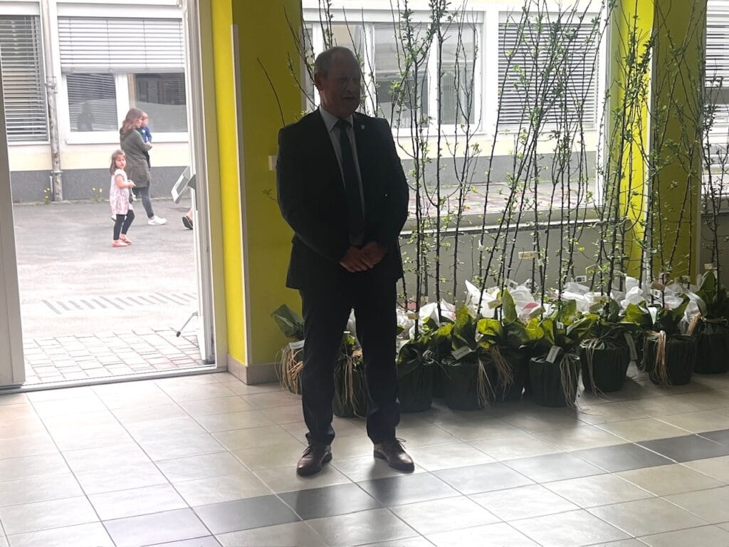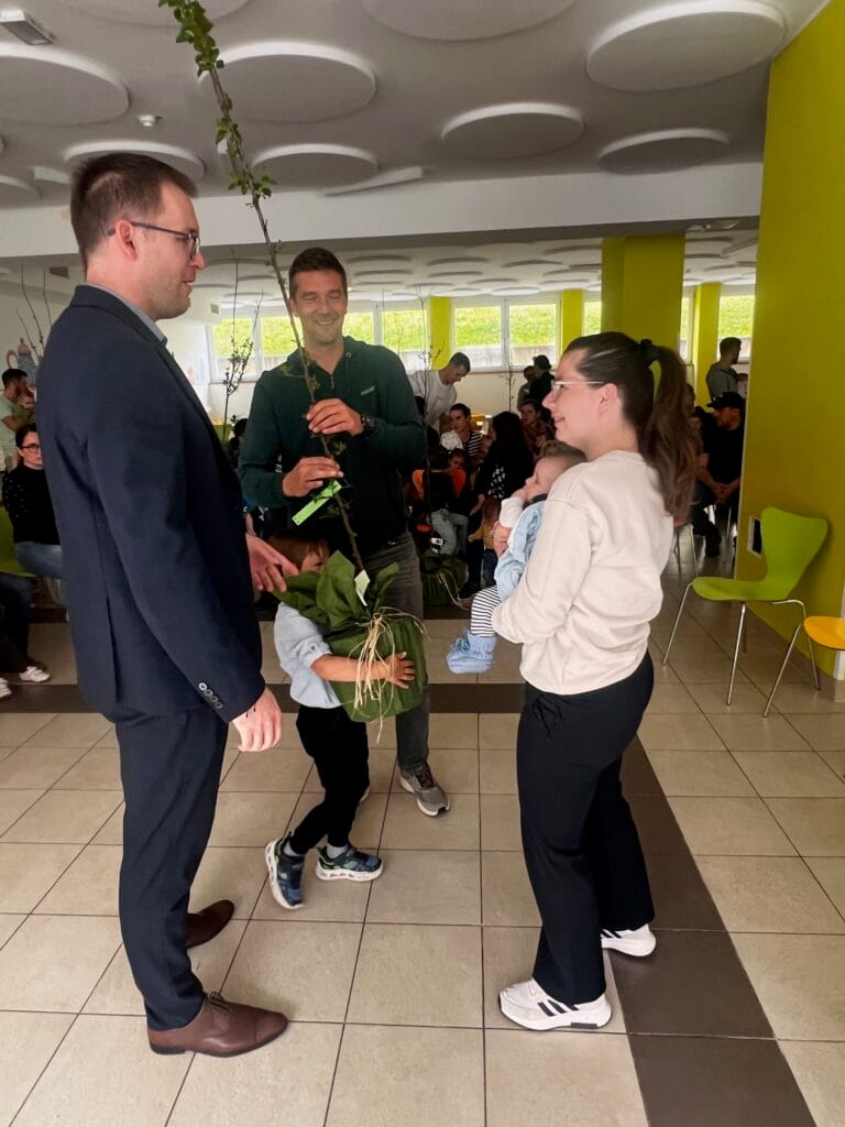 Včeraj, 23.4.2025, je župan Leopold Pogačar skupaj z ravnateljem OŠ Gregorjem Pungarškom že tradicionalno podelil sadike sadnega drevesa (češplje) novorojenčkom, ki so bili rojeni lani in stalno bivajo v naši občini. Poleg denarnega prispevka, ki ga občina namenja ob rojstvu otroka, vsako leto podeli še medovita drevesa. Tokrat je bilo 38 otrok, ki so na podelitev s seboj pripeljali starše. Krajši kulturni program so pripravili otroci OŠ Žirovnica.