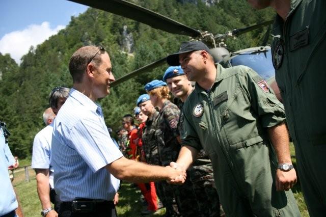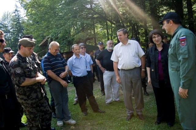 Ob tej priložnosti se je vaje udeležila tudi ministrica za obrambo dr. Ljubica Jelušič, njen gost pa je bil med drugimi tudi župan Leopold POGAČAR.
