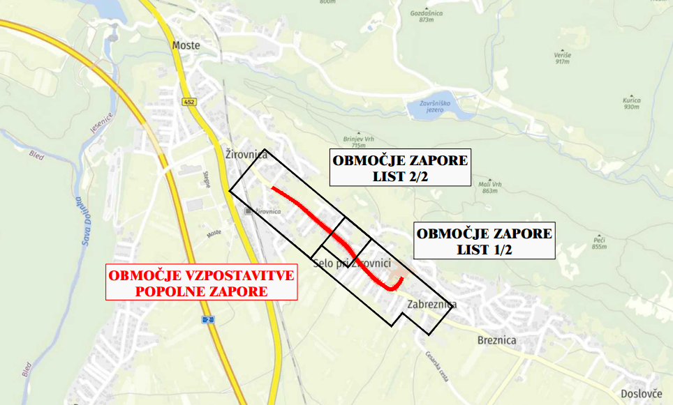 Prav tako bo na razdalji od Osnovne šole Žirovnica do bara Ajdna kratkotrajno zaprta državna regionalna cesta ter vsi njeni priključki in dovozi.