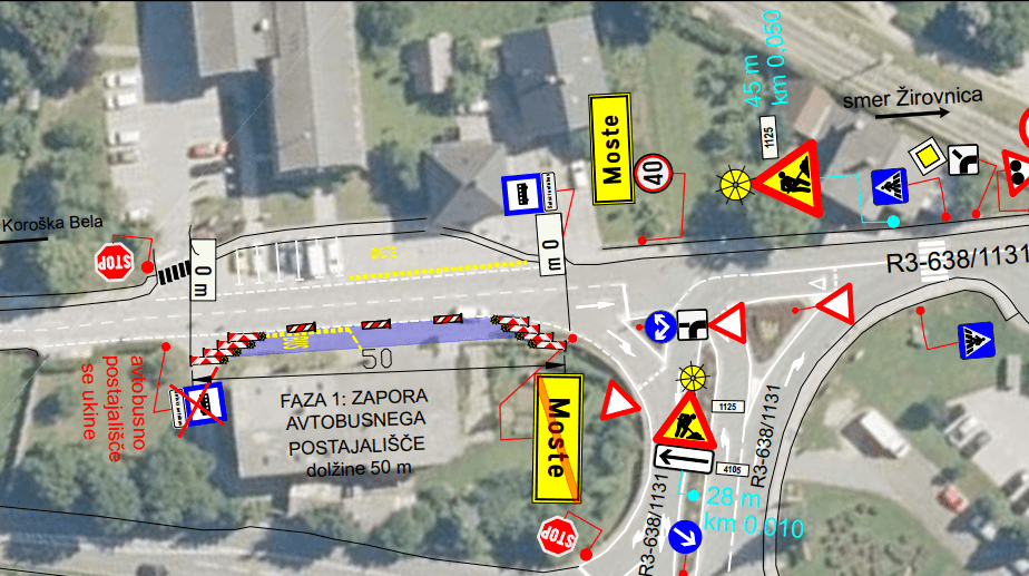 Občinska kategorizirana cesta z oznako LC 150011 (R2 Ajdna – R3 Moste) na zemljišču s parc. št. 1198/3, k.o. Žirovnica, v območju od zemljišča s parc. št. 24/4 (avtobusno postajališče) do zemljišča s parc. št. 727/32, k.o. Žirovnica, bo zaradi izgradnje elektro kabelske kanalizacije (priključek za nov Outdoor hotel) fazno delno zaprta v obdobju med 17. 9. in 27. 10. 2025, med 7. in 17. uro.