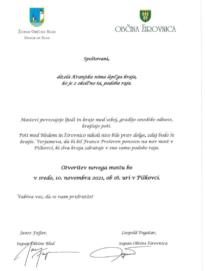 Otvoritev mostu v Piškovci – povabilo