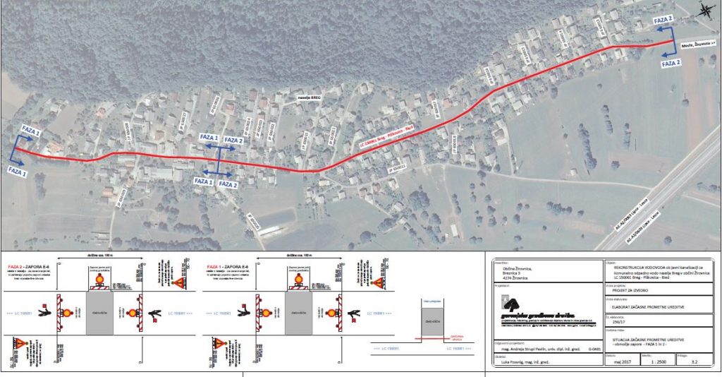 2. Popolna zapora ceste z oznako LC 150061 (faza 1 in faza 2) in vseh pripadajočih javnih poti ob LC 150061 (faza 3) bo trajala v omenjenem terminu od 0.00 do 24.00 ure.