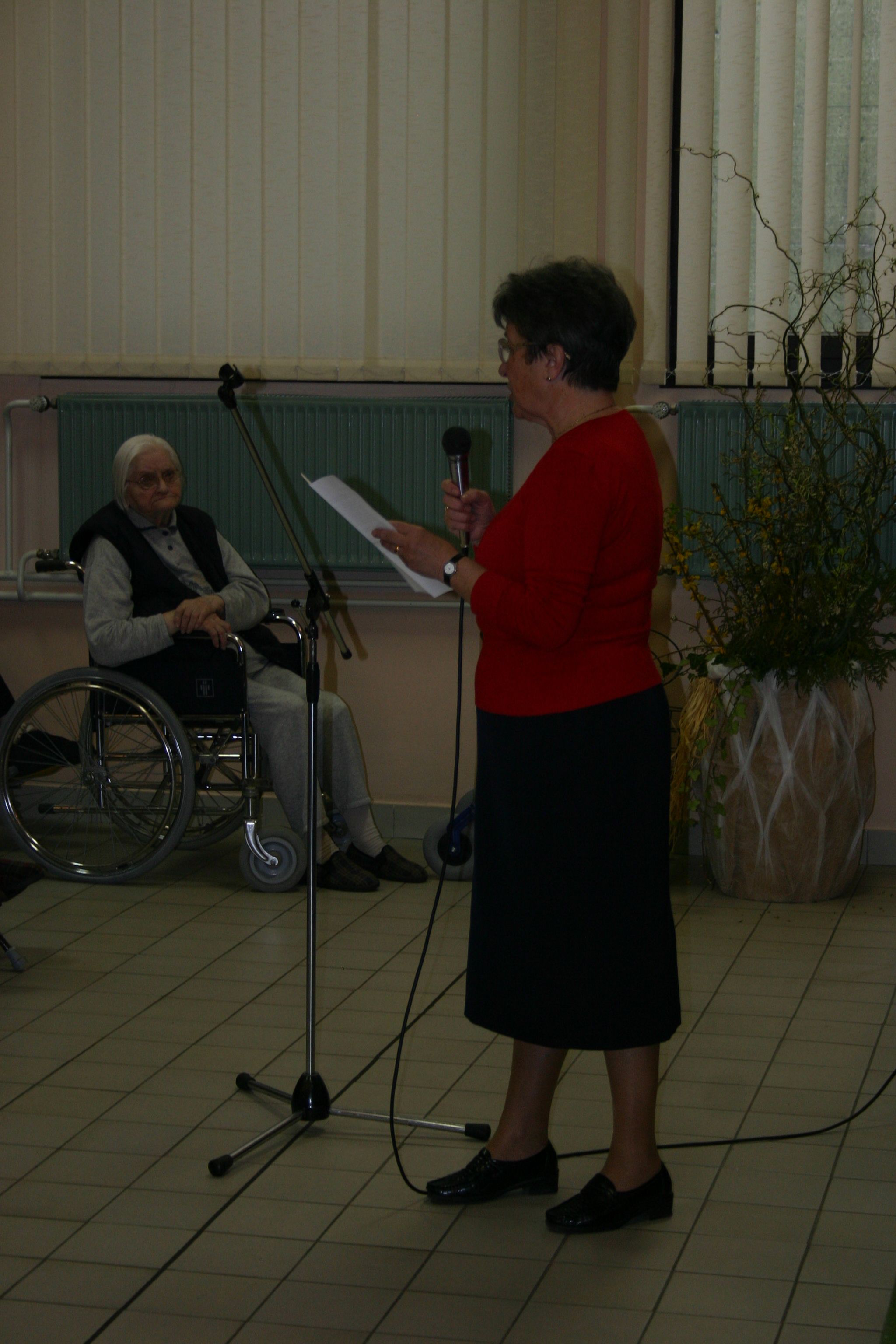 V Domu upokojencev dr. Franceta Berglja na Jesenicah smo za stanovalce doma pripravili pomladansko srečanje s kratkim programom, ki ga je koordinirala Jerca Tičar, predstavnica starejših v Društvu upokojencev Žirovnica. Srečanju sva se pridružila tudi z županom Občine Žirovnica Leopoldom Pogačarjem.