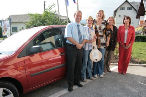 Župan je predal ključe novega vozila ge. Maji ROBIČ, ki je vodja pomoči na domu, ona pa naprej ge. Barbari.
