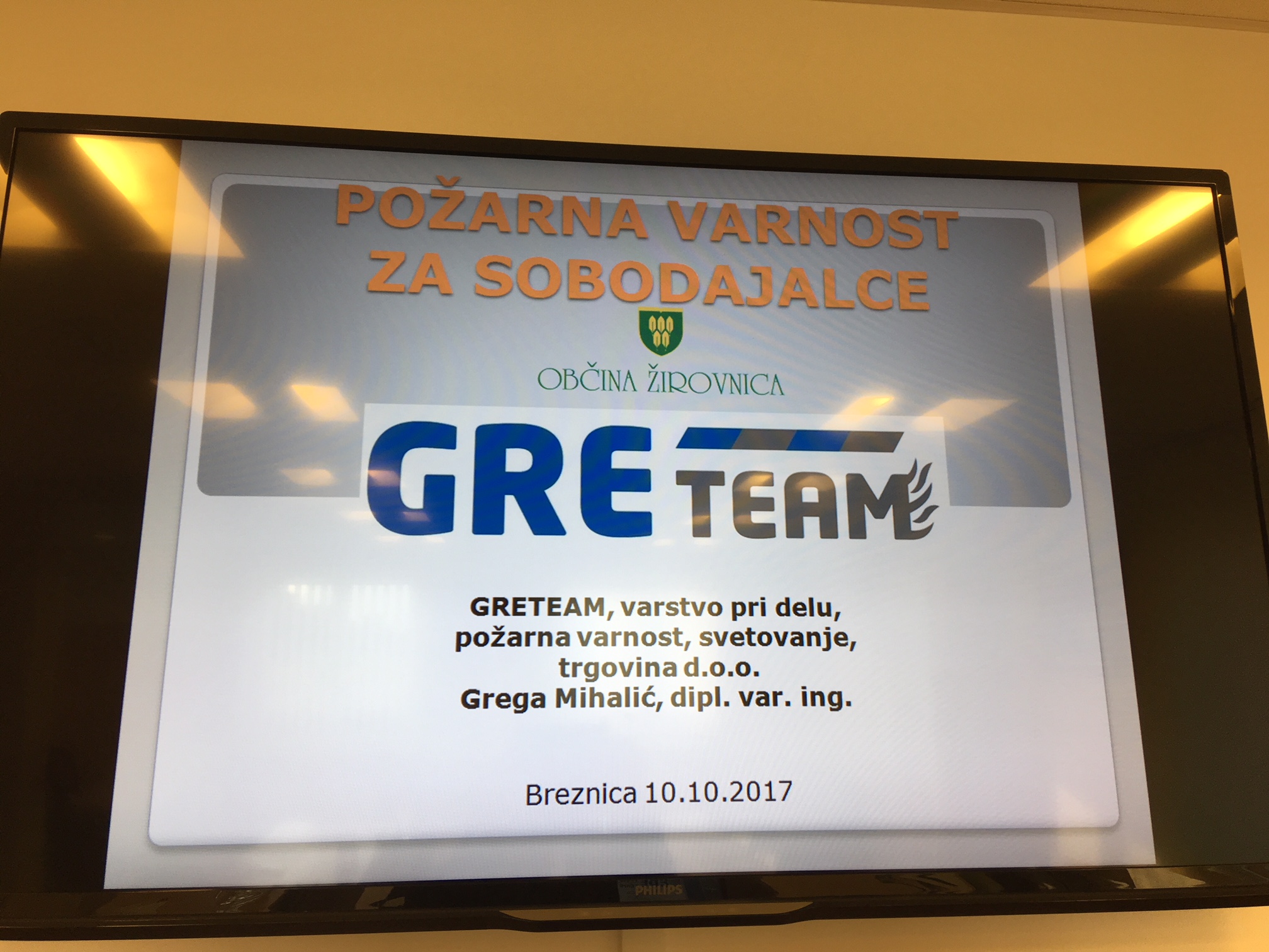 V torek, 10.10.2017, je bilo v organizaciji Občine Žirovnica izvedeno predavanje o požarni varnosti za sobodajalce v občini Žirovnica. Predavanje je izvedel Grega Mihalić dipl.var.ing, s podjetja Greteam – varstvo pri delu, požarna varnost, svetovanje, trgovina d.o.o. Predavanja se je udeležilo razveseljivo število sobodajalcev, ki so dobili ustrezne informacije v zvezi z požarno varnostjo svojih objektov, predpisi, opremo in podobno. Udeležencem smo razdelili tudi nekaj turistično-propagandnega materiala.
