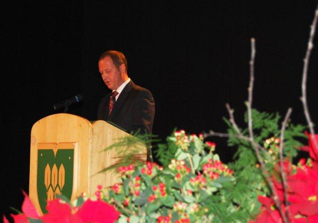 Osrednja Občinska proslava ob našem občinskem prazniku je potekala v soboto 3. decembra s pričetkom ob 19.00 uri v dvorani Pod Stolom. Župan Leopold Pogačar je v slavnostnem govoru predstavil dosežke in projekte v zadnjem letu dni. Med drugim je dejal, da jim je v letu 2011 uspelo sprejeti občinski prostorski načrt, ki je na novo začrtal rabo prostora in pogoje za gradnjo. Občina je dobila lokalni energetski koncept in prvič v zgodovini namenila denar za energetsko sanacijo objektov. Zgradili so parkirišče v Završnici, dobili urejeno križišče v Žirovnici, uredili komunalno infrastrukturo v novi poslovni coni, kjer je Občina pričela z gradnjo zbirnega centra, poslovne prostore v coni je začelo graditi tudi prvo podjetje, to je Saxonia Franke, ki me drugim načrtuje zaposlitev 20 novih delavcev. Med načrti za prihodnje leto je Pogačar izpostavil razširitev ceste v Završnico, začetek gradnje kanalizacije v okviru projekta GORKI, začetek gradnje večnamenskega objekta na Breznici, priprava projektov za obnovo objekta Selo 15, kjer bo občina uredila najmanj 6 občinskih stanovanj in gradnjo otroškega igrišča s pump track stezo na Selu, pri čemer so za večino projektov pridobili tudi evropski denar.