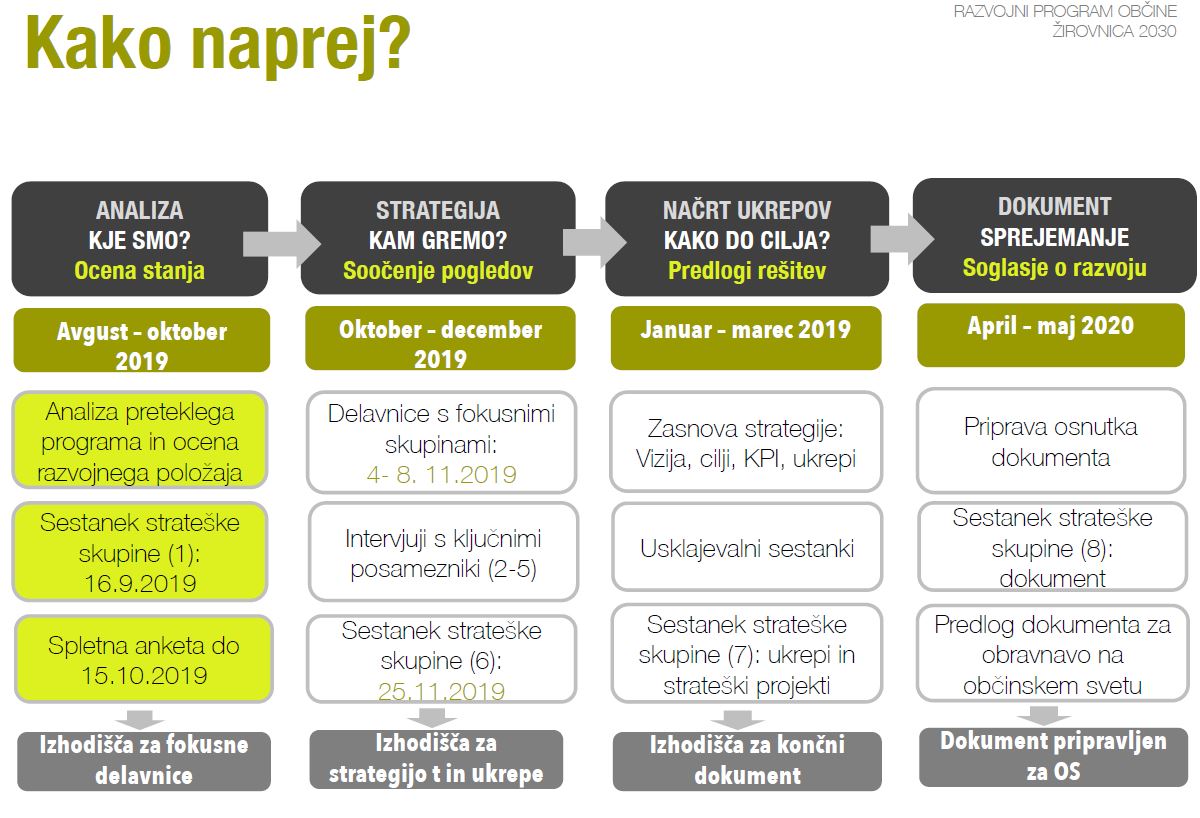 Sedaj sledi poglobljena analiza in obdelava statističnih podatkov, analiza realizacije dosedanjega razvojnega programa, izvedba delavnic in javne obravnave. Terminsko smo si zamisli takole: