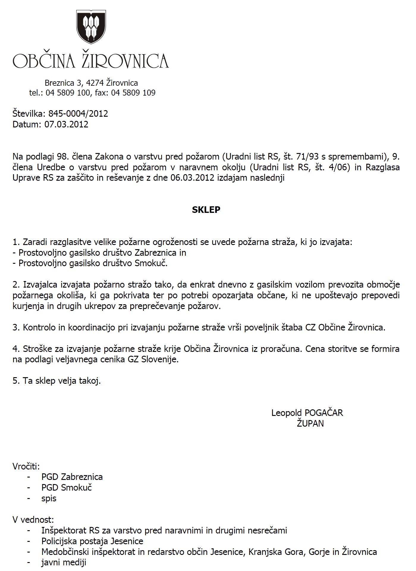 Zaradi tega je župan občine Žirovnica izdal sklep o organiziranju požarne straže, ki velja do preklica.